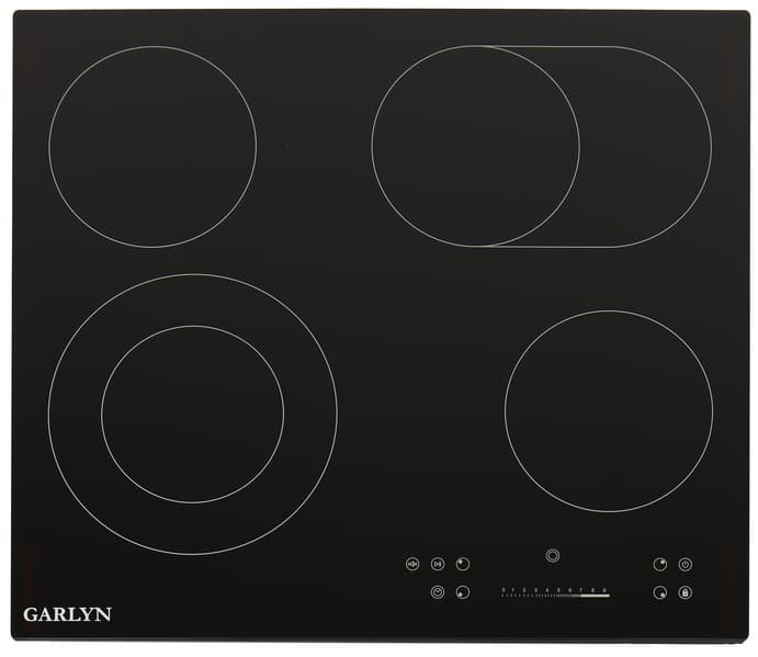 У варочной панели Garlyn H-400 мощностью 6600 Вт есть всё самое необходимое: сенсорное управление, 9 уровней нагрева, датчик остаточного тепла, функции отключения звука, блокировки, паузы и таймера (до 99 минут).