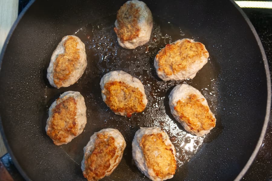 Сначала котлеты подрумянивались на 9-м режиме по несколько минут с каждой стороны.