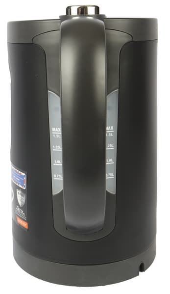Сбоку вдоль ручки расположены два пластиковых полупрозрачных окошка, по периметру которых находятся белые светодиоды, включающиеся при нагреве. На окошках нанесены градуировки из 4 рисок — 0,75, 1,0, 1,2, 1,5 л.