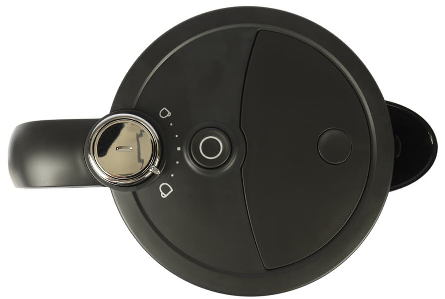 Нажатие на черную матовую кнопку вблизи носика чайника приведет к отбрасыванию подвижной половинки крышки вверх примерно на 75 градусов.