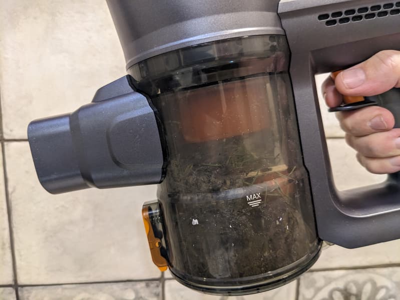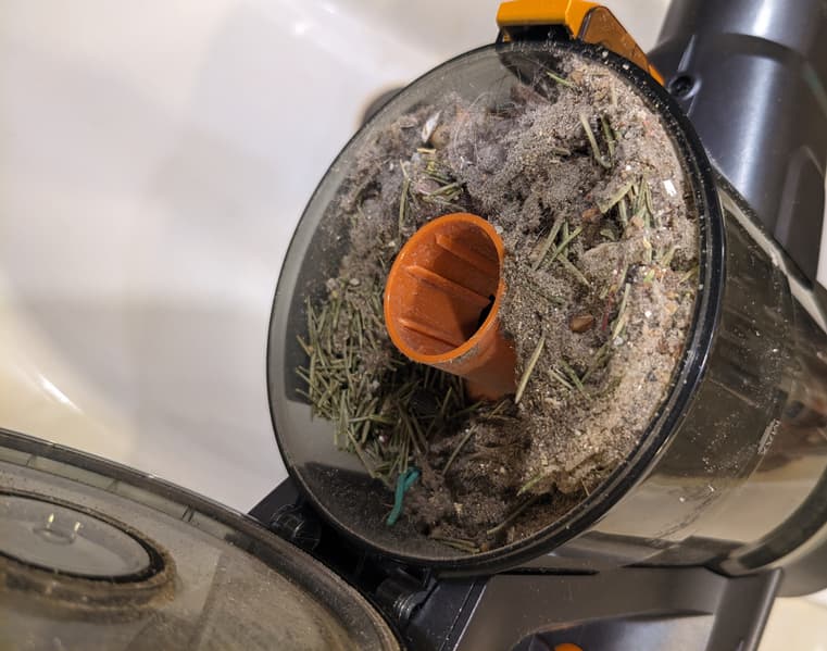 Большую часть мусора из резервуара можно вытряхнуть в ведро, не запачкав рук.