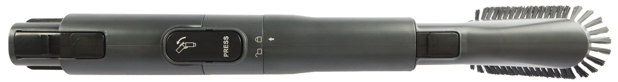 Оригинальная удлинительная трубка для ручной уборки оставила у нас двойственное впечатление. Возможность произвольно изогнуть в вертикальной плоскости воздушный тракт помогает добраться до участков, которые обычно обходят стороной: к примеру, до верхних поверхностей шкафов. Вытягивая из удлинителя гофрированную трубку, можно повысить маневренность насадки и увеличить радиус действия — это полезно, к примеру, при наведении порядка в салоне автомобиля.