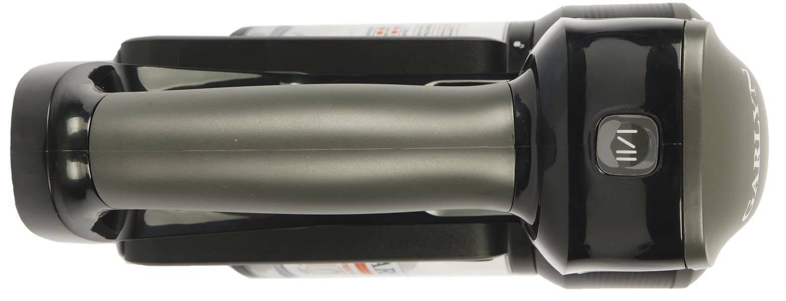 Индикатора уровня заряда здесь нет: для контроля предназначен красно-зеленый светодиод на съемном аккумуляторе. В процессе работы он горит зеленым светом, переключаясь на красный при падении уровня до критического. При зарядке мигает зеленым, а при достижении 100% емкости горит ровным зеленым.
