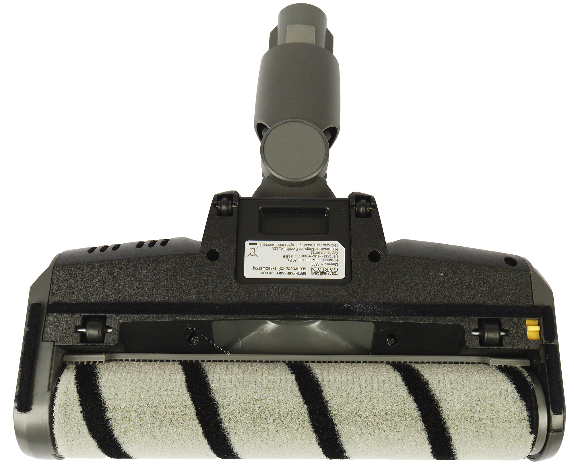 Конструкция половой щетки позволяет ей изгибаться относительно удлинительной трубки более чем на 90° вперед-назад и вправо-влево. Положения для вертикальной парковки у нее нет. Прозрачная крышка ротора позволяет легко контролировать его вращение и вовремя убирать то, что в нем застряло и мешает работать.