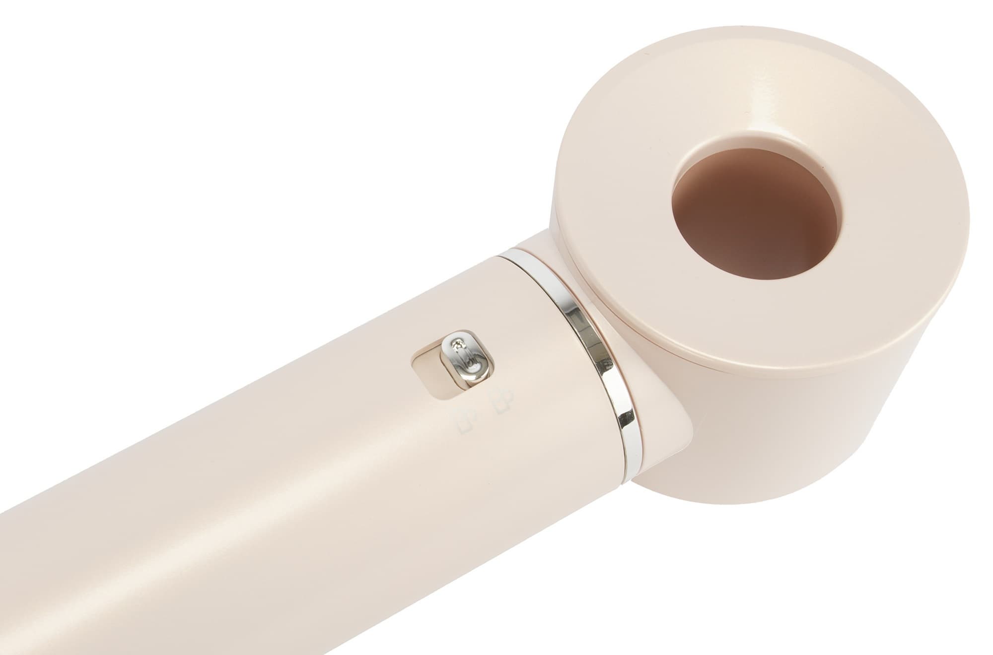 С помощью центральной кнопки-переключателя режима работы осуществляется включение/выключение фена. Этой же кнопкой, сдвигая ее вверх до упора и удерживая в этом положении, осуществляется подача холодного воздуха.