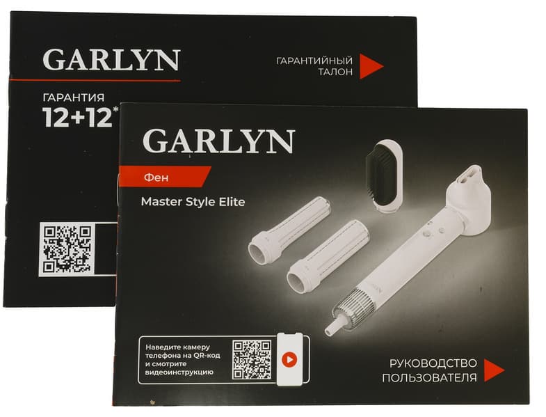 Инструкция, которая сопровождает фен Garlyn Master Style Elite, представлена в виде брошюры формата А5. Тоненькая черно-белая брошюра на 24 страницы с небольшими цветными вставками на обложке напечатана на глянцевой бумаге.