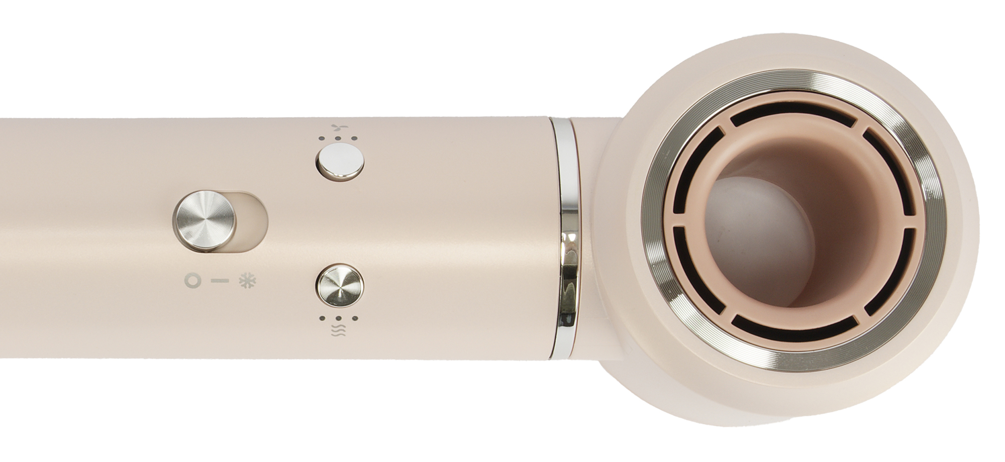 Насадки для локонов устроены так, что используют так называемый эффект Коанда, который позволяет воздушному потоку, закручиваясь, притягивать пряди волос к цилиндрической насадке, накручивая их при этом вокруг нее. Особенностью данных насадок также является возможность сменить направление потока воздуха на самой насадке простым движением. Держа ее одной рукой за основание, нужно сделать небольшой поворот вокруг оси влево или вправо. Таким образом, мы можем переключать направление потока воздуха на противоположное, не меняя саму насадку и оставляя прежнее положение рук при работе с феном.