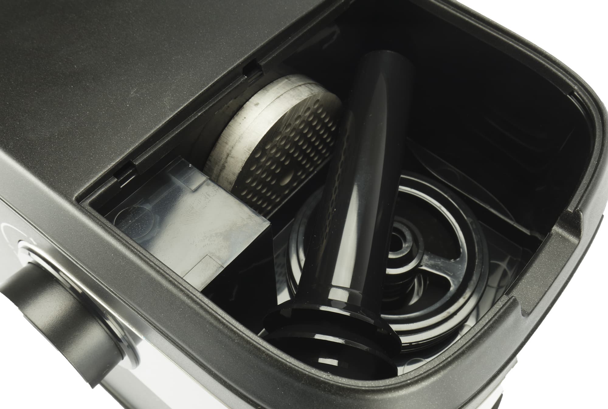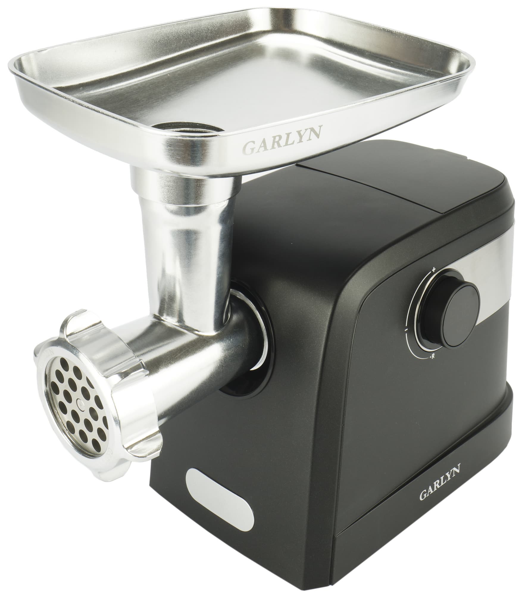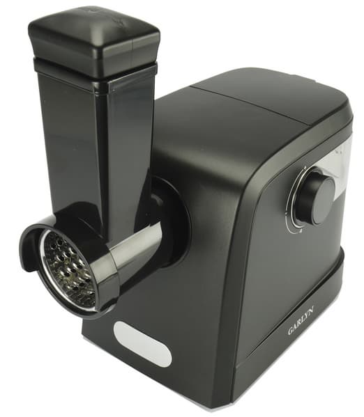 Электрическая мясорубка Garlyn MG-2000 отличается компактным размером и широкой комплектацией. В арсенале устройства — три диска для изготовления фарша разной степени измельчения, насадки для изготовления колбас и кеббе, а также блок овощерезки с пятью насадками. Для удобства хранения перфорированных решеток и некоторых дополнительных насадок в корпусе прибора организован специальный отсек.