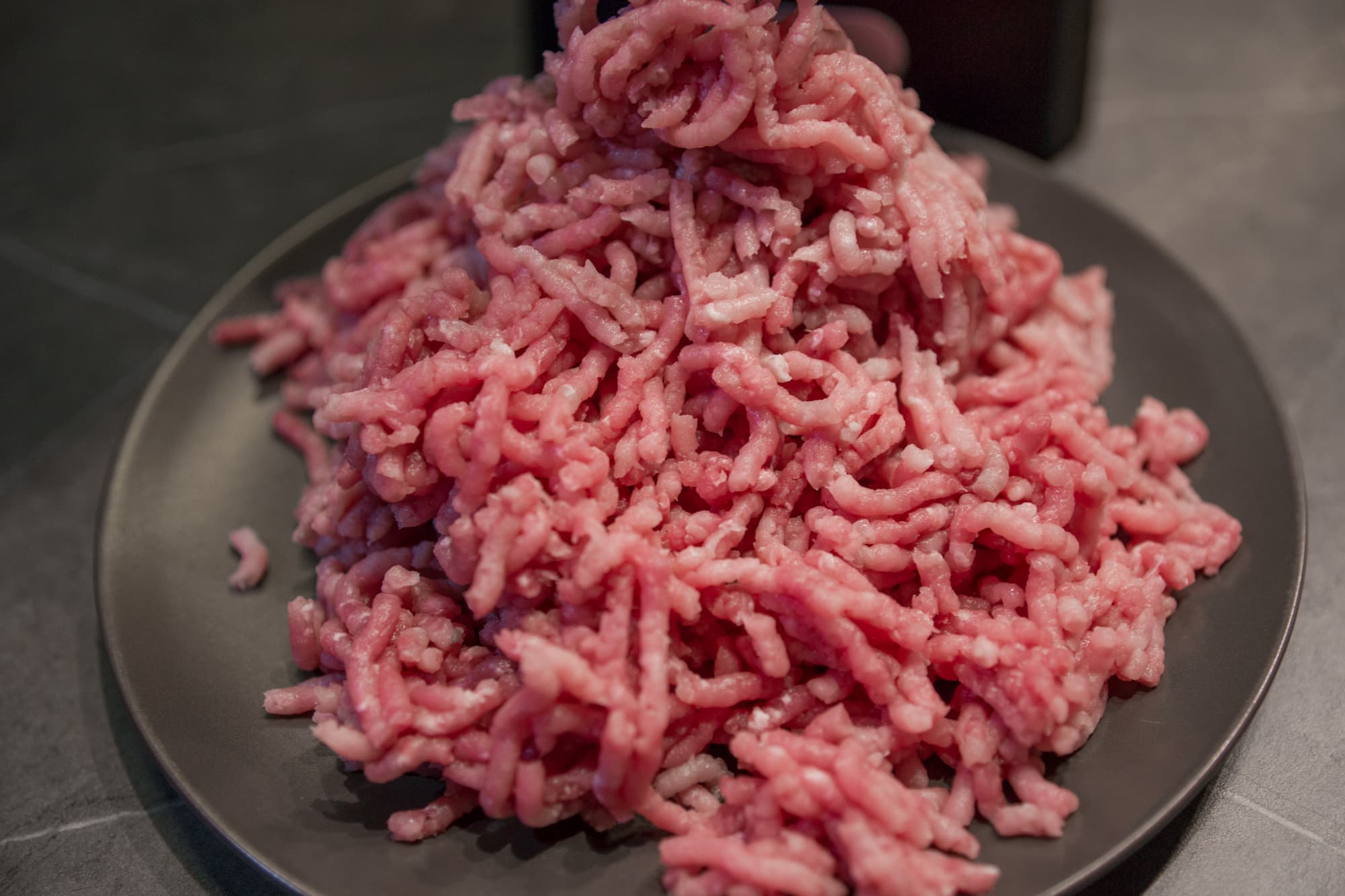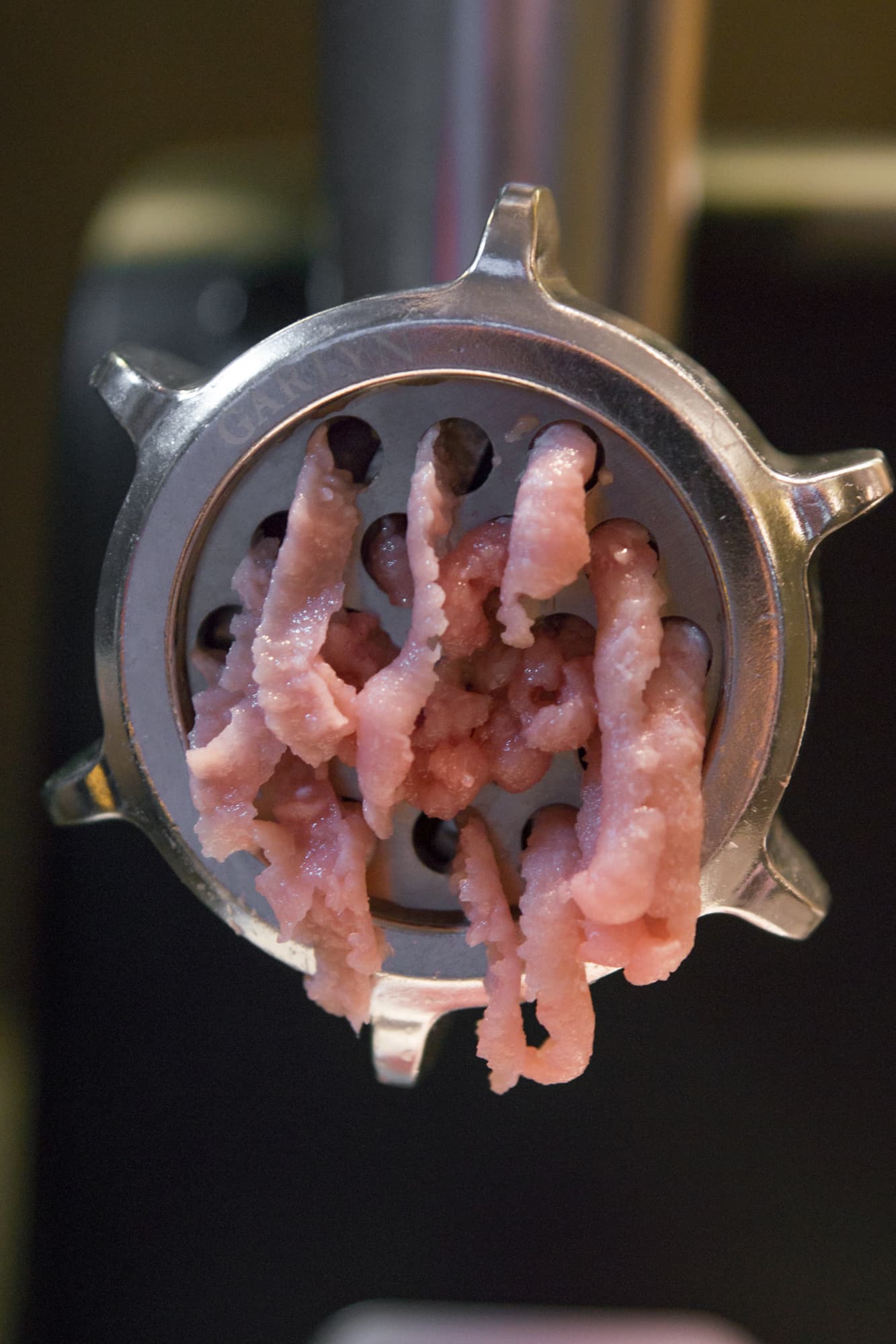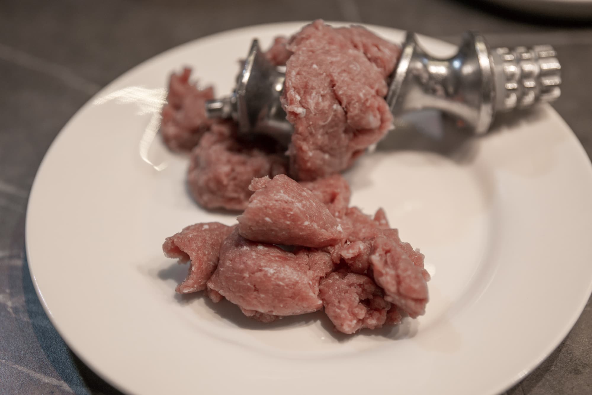 Первый, традиционный и обязательный тест — это фарш из свиного окорока.