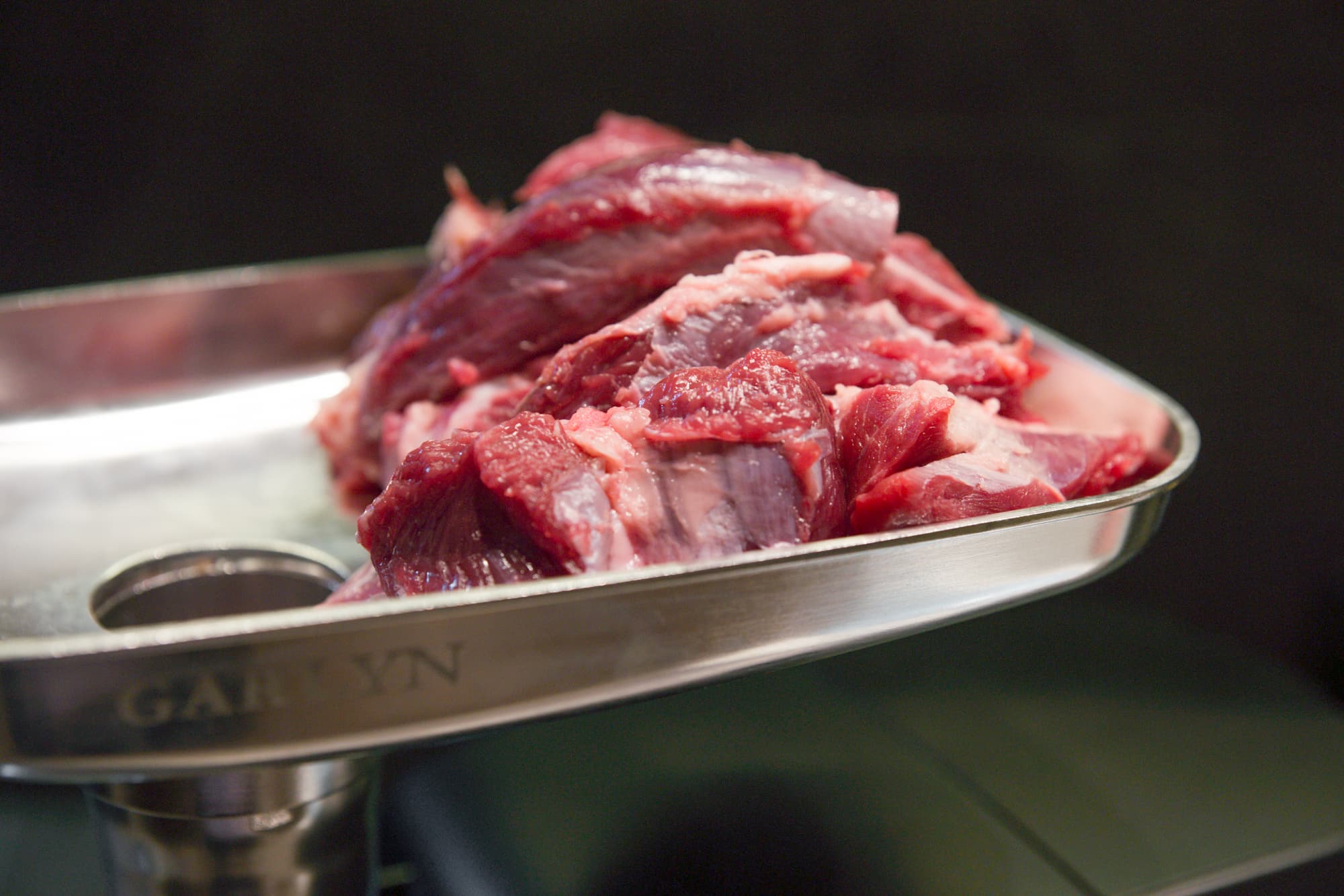 Для этого теста мы взяли жилистую говядину третьего сорта — говяжьи обрезки с большим количеством пленок и жилок.