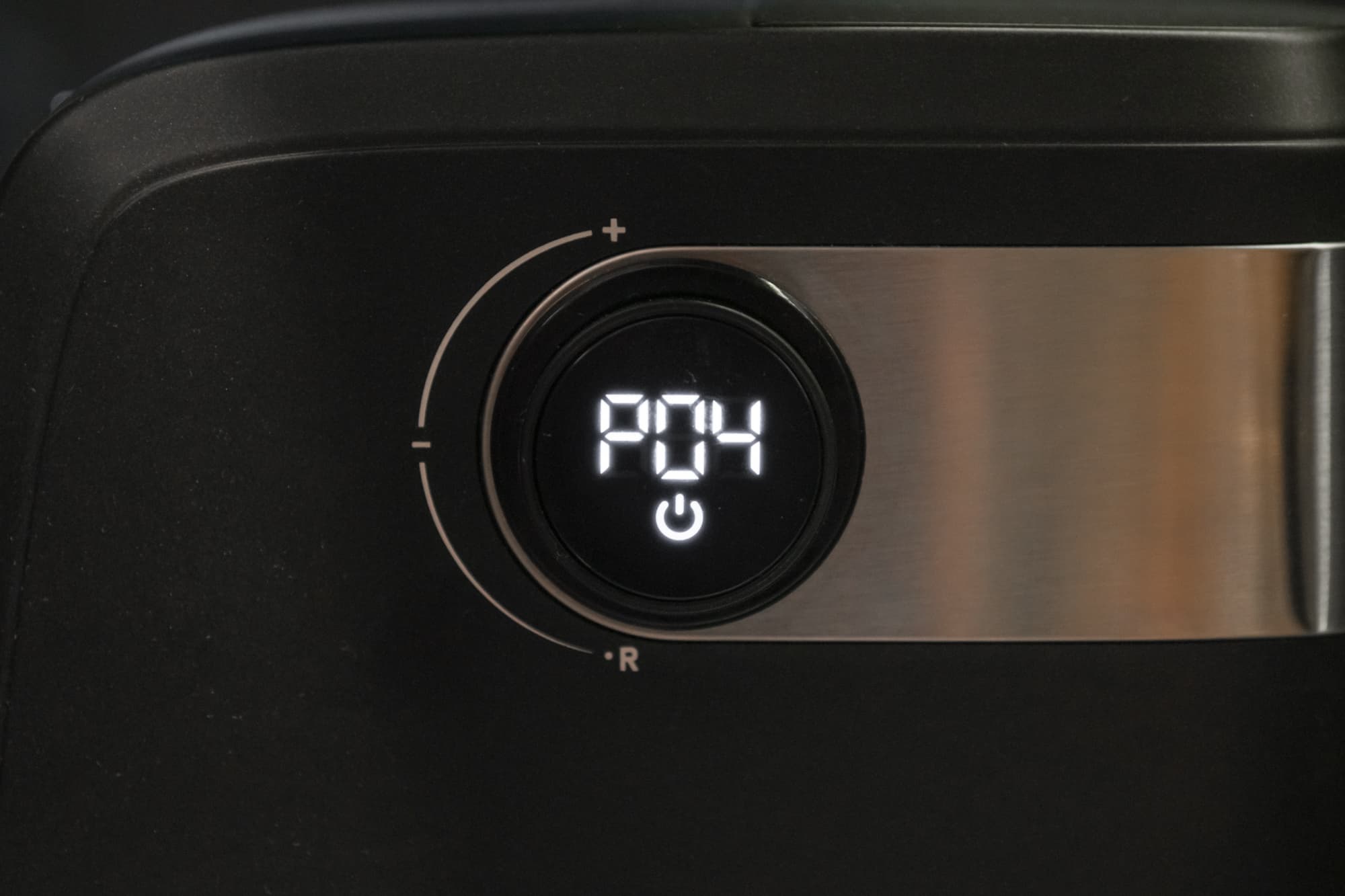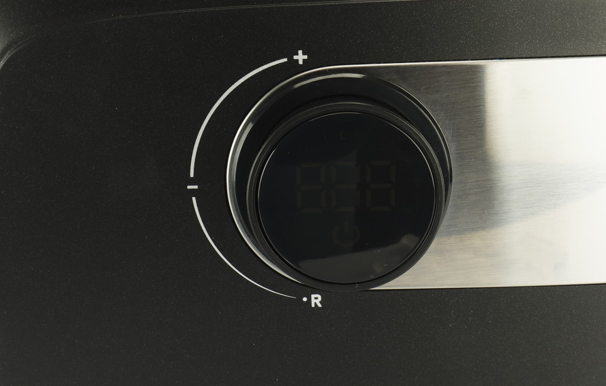 Мясорубка Garlyn MG-2000 управляется круглым поворотным и одновременно нажимным регулятором. При подключении к сети на дисплее встроенном в регулятор появляется знак включения. Для начала работы регулятор следует нажать как кнопку. Загорится индикатор с нулевым значением, которое при выборе скорости будет меняться на соответствующую цифру.