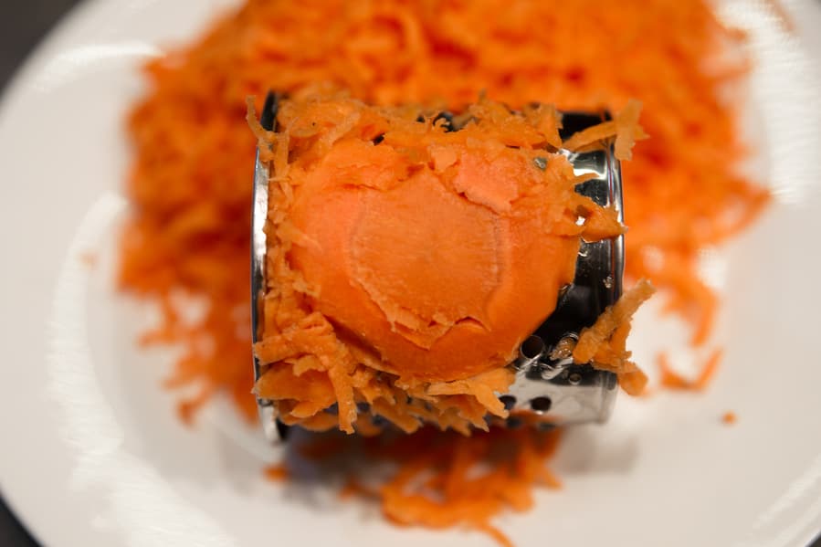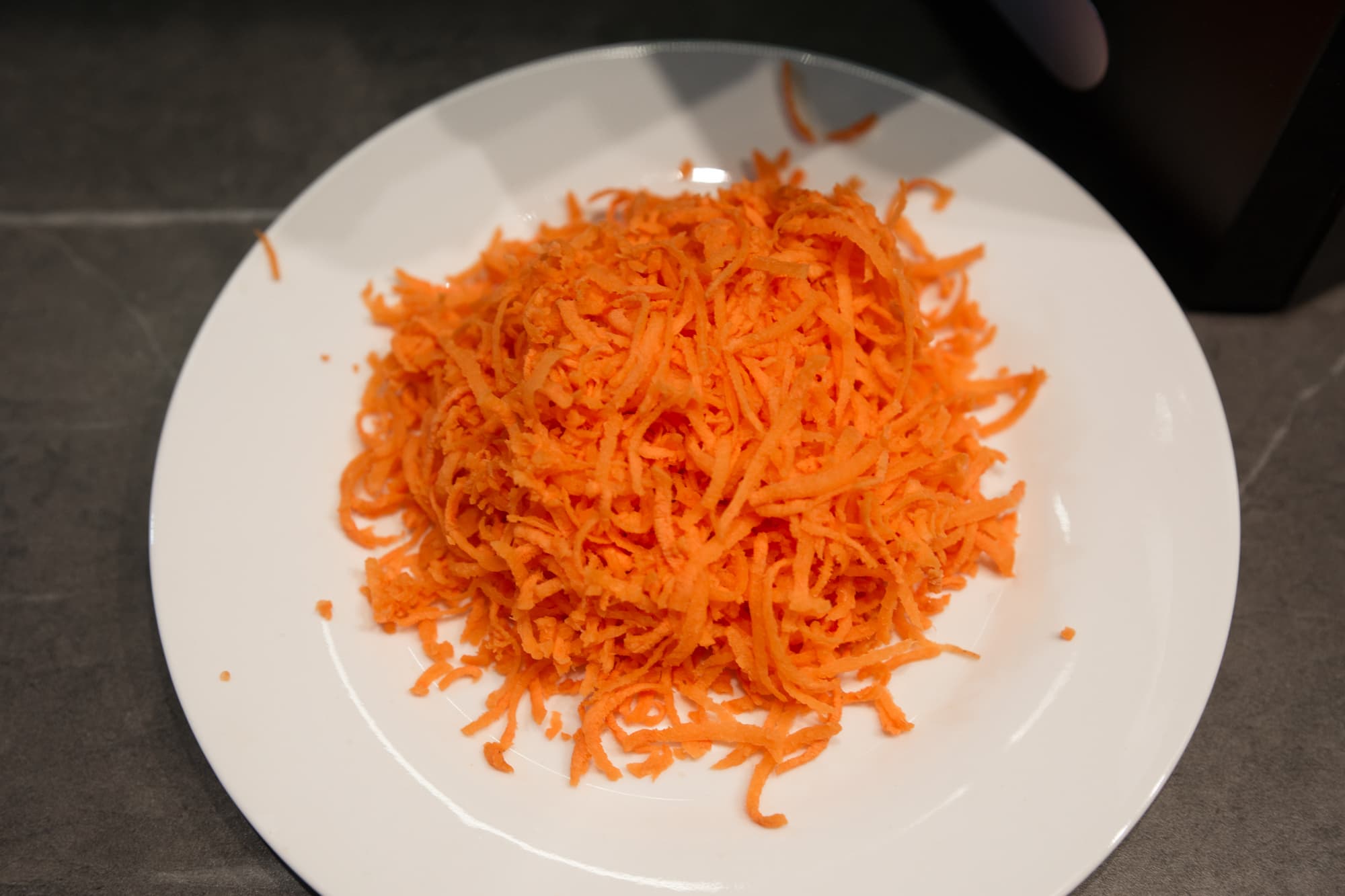 Морковь мы натерли на барабане с самыми мелкими отверстиями и снова получили отличный результат.