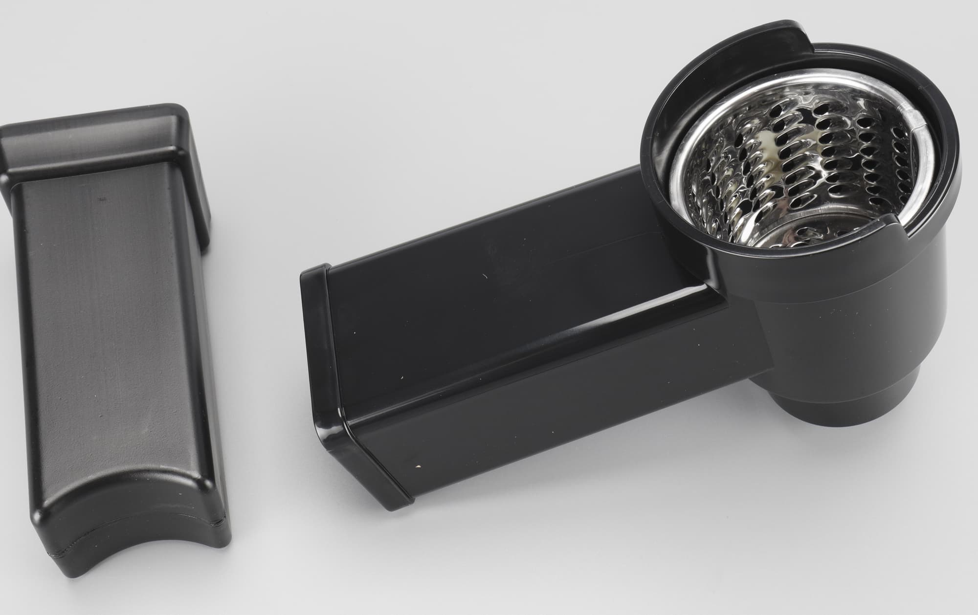 Тем не менее, несмотря на очевидные плюсы, за компактность надо чем-то платить. При обработке мяса мы получили фарш очень хорошего качества, в его массе ни разу не встретились целые кусочки, но скорость мясорубки мы оцениваем ниже средних показателей. А вот к насадке-овощерезке претензий никаких. Она отлично справляется с филигранной шинковкой и теркой свежих овощей.