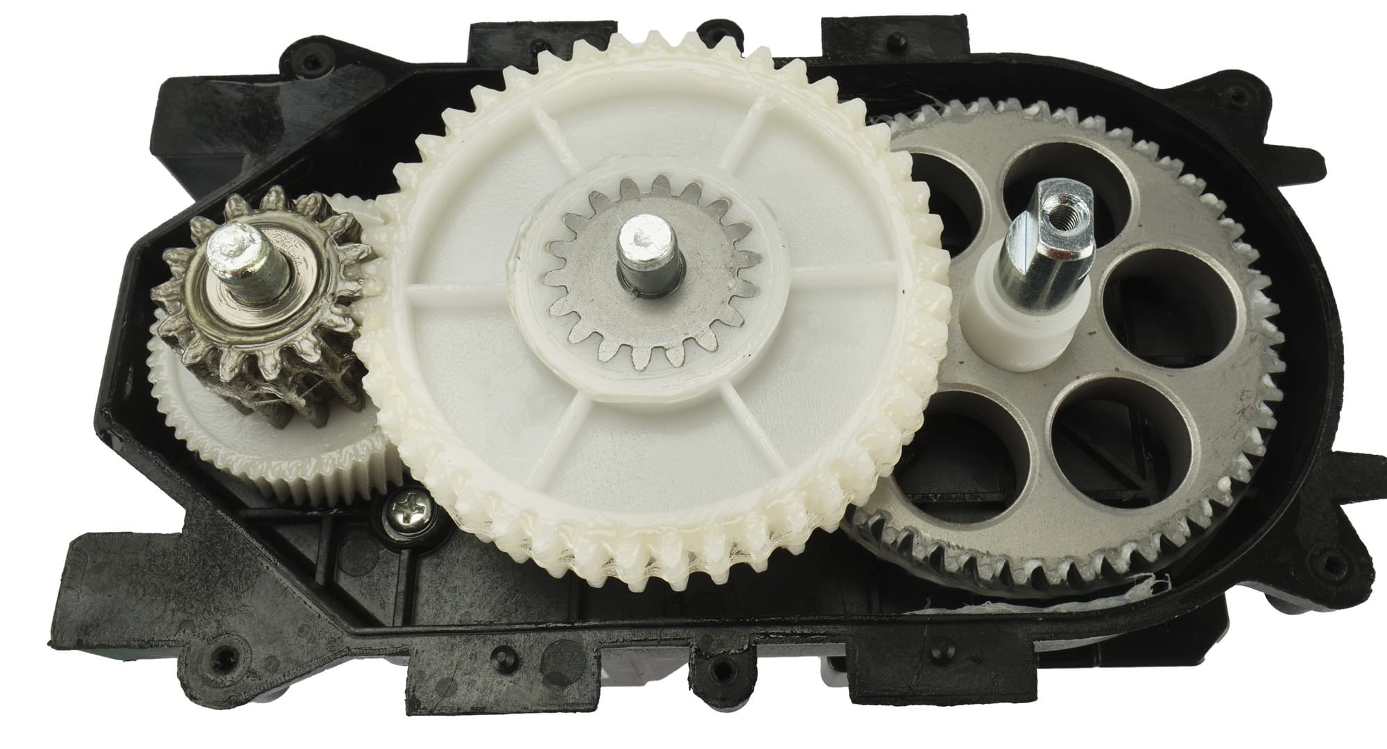 А вот что внутри. Редуктор убран в отдельный корпус, что создает дополнительную защиту от случайных повреждений и попадания посторонних частиц. При необходимости корпус редуктора разбирается.