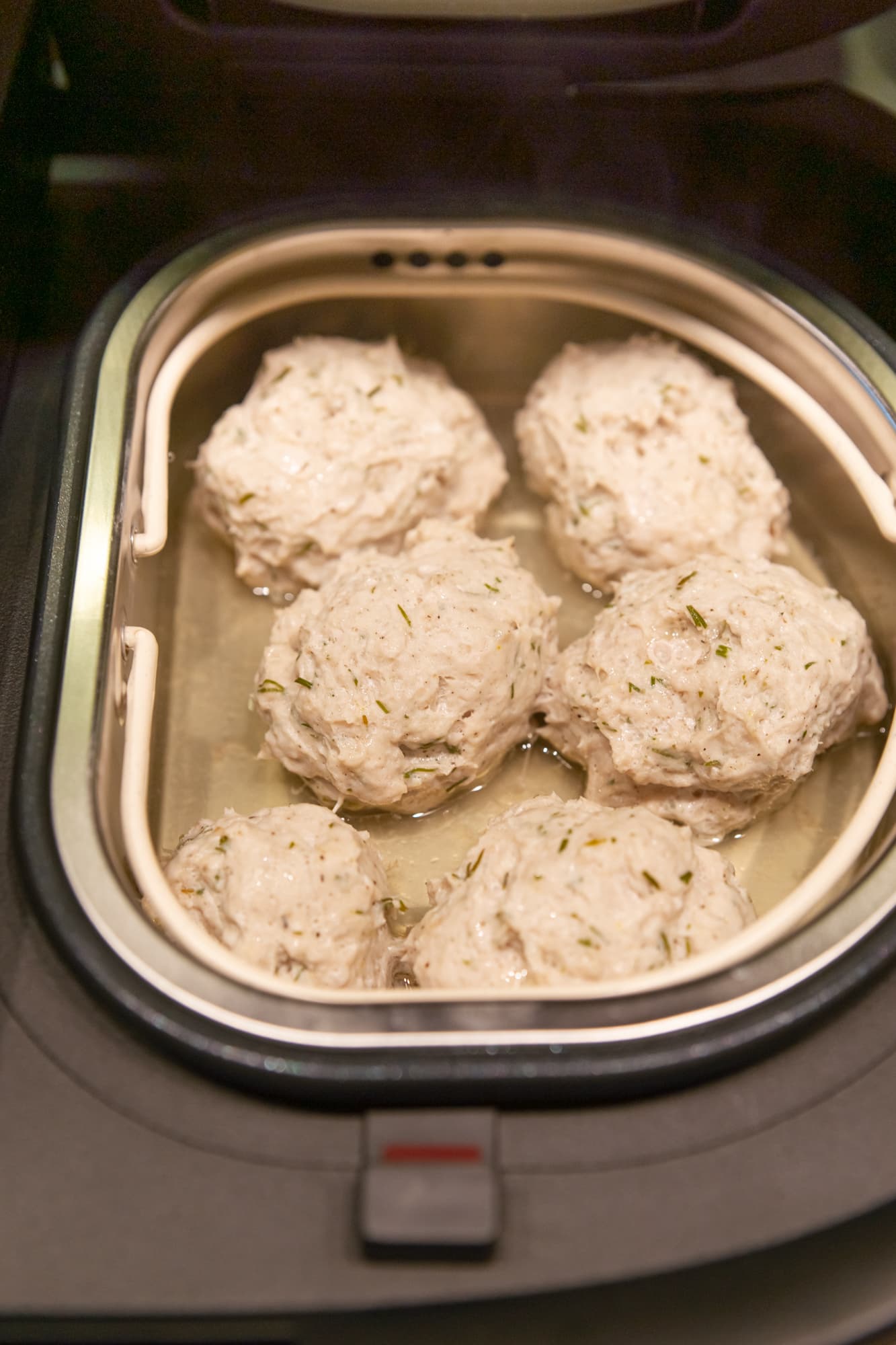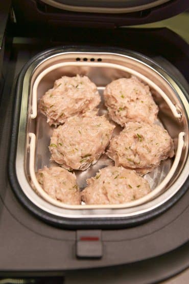 Фарш из индейки смешали с измельченным укропом, солью и специями и сформировали будущие котлеты. В чашу положили 250 г промытой гречневой крупы, залили 500 мл воды, посолили и включили программу Пар. Сверху поставили контейнер для варки и разместили в нем котлеты. В один лоток поместилось 350-380 г. Всё приготовилось одновременно. Каша получилась рассыпчатой, а котлеты — сочными.