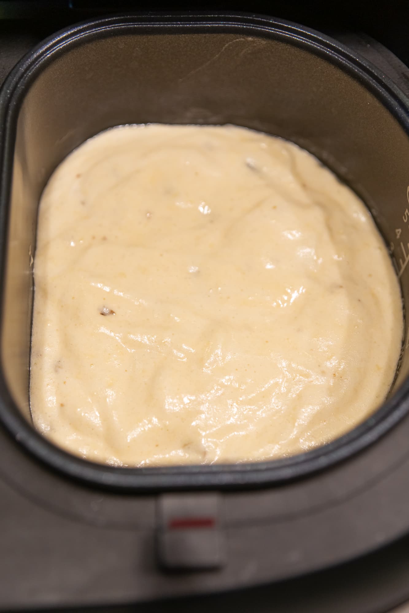 Чашу мультиварки смазали сливочным маслом. Вылили в нее тесто, установили режим Выпечка на 1 час и закрыли крышку.