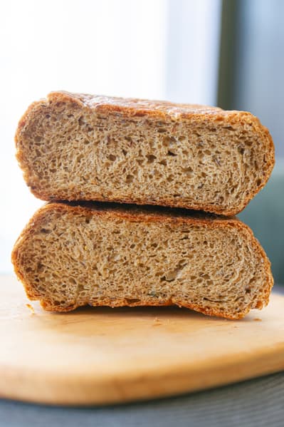 На следующий день хлеб был так же прекрасен, как и сразу после выпечки — не потерял своих вкусовых качеств и отлично подошел к ветчине из предыдущего теста.