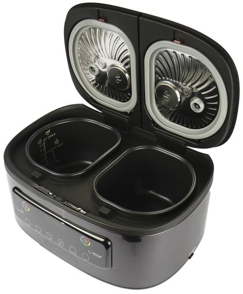 Чаши выполнены из толстостенного металла с антипригарным покрытием Daikin. Мы ожидаем, что это позволит готовить с минимальным количеством масла, а также обеспечит легкий уход.