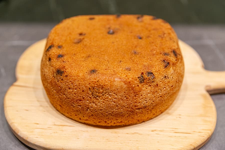 Завершить тестирование Garlyn MR-Duo 10 решено было на программе Выпечка. Для приготовления бисквита мы взяли 4 яйца. В процессе взбивания добавили к ним половину чайной ложки лимонного сока и, постепенно подсыпая сахар, довели массу до состояния устойчивой пены. В отдельной емкости смешали муку, разрыхлитель и соль. Смесь дважды просеяли и, аккуратно перемешивая силиконовой лопаткой снизу вверх, в три захода вмешали в яичную массу. Затем добавили в тесто измельченные грецкие орехи и вымоченный изюм и так же аккуратно перемешали.