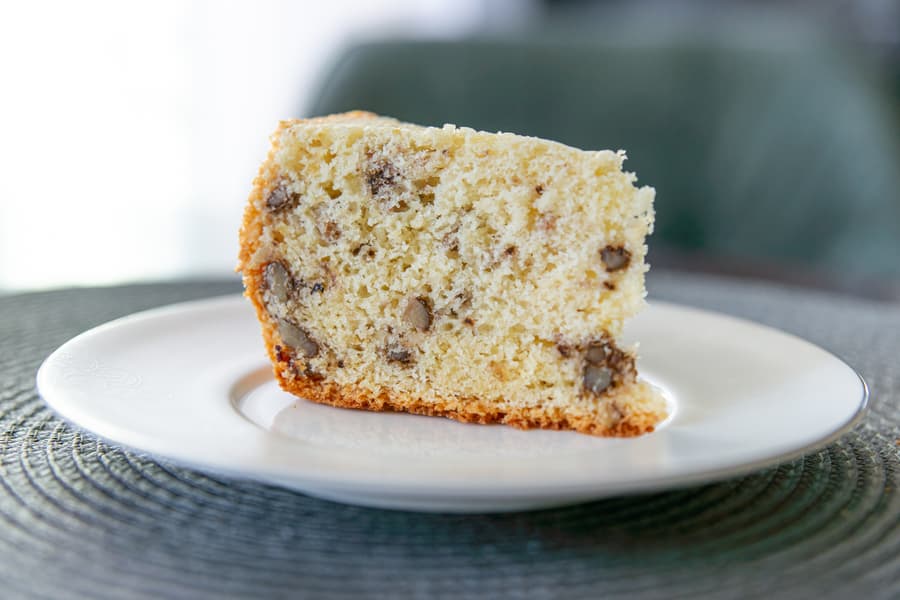 Ингредиенты: мука пшеничная — 110 г, яйца — 4 шт. (200 г), сахар — 80 г, одна щепотка соли, лимонный сок — 0,5 чайной ложки, разрыхлитель — 0,5 чайной ложки, изюм — 15 г, грецкие орехи — 15 г, сливочное масло — 10 г