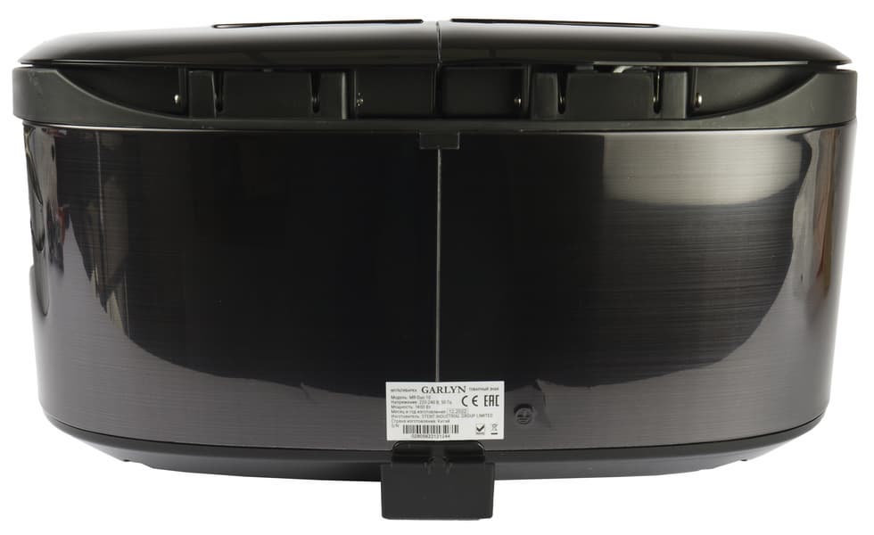 Пластиковый корпус Garlyn MR-Duo 10 имеет форму параллелепипеда со скругленными углами. Конструкция весом 5 кг довольно компактная. Благодаря обтекаемым формам и малому количеству видных глазу элементов, крайне стильная.