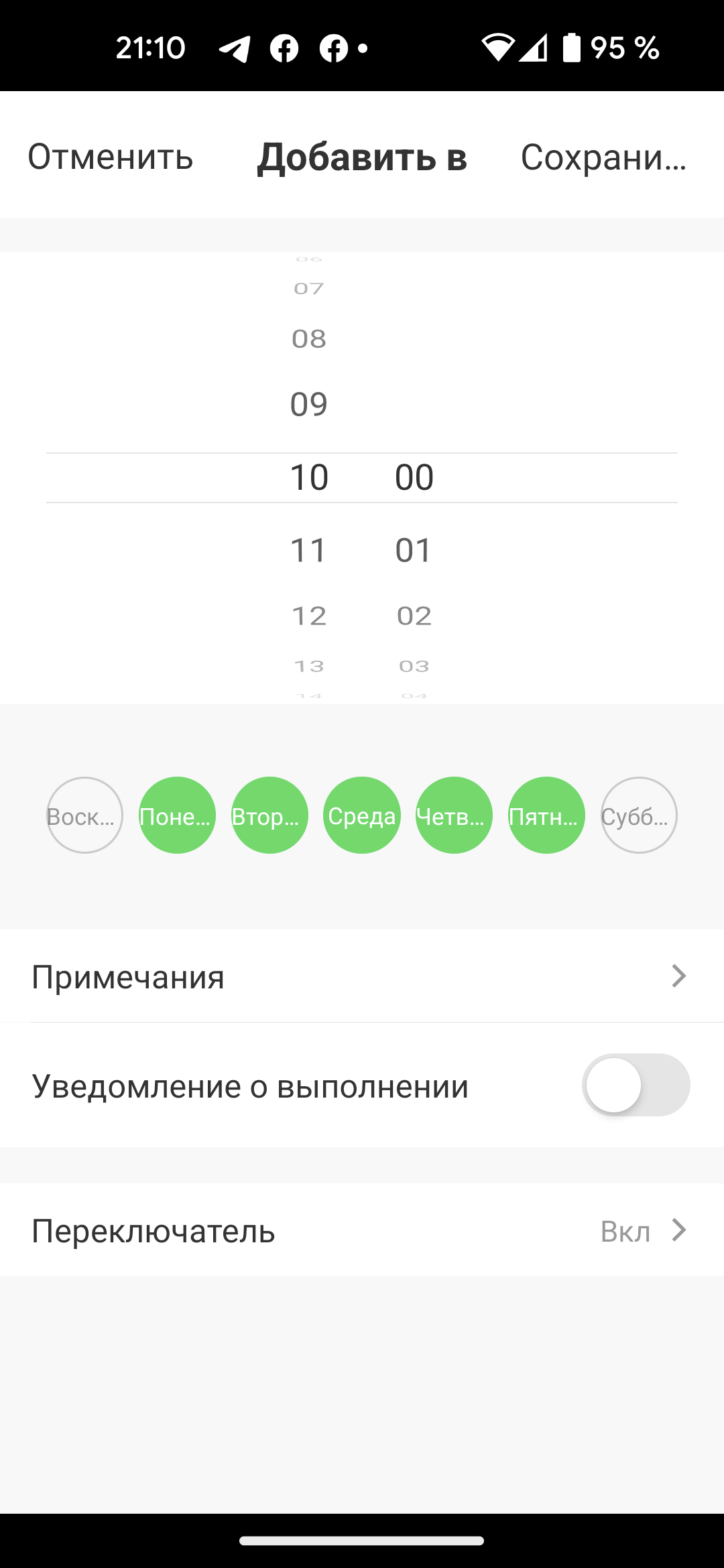 | Настройка расписания уборки | есть |