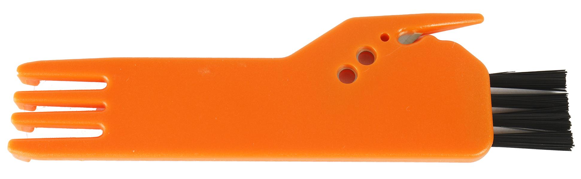 Есть у этой модели и традиционное приспособление для очистки: щеточка, гребенка и лезвие, которым предполагается освобождать роторы от намотавшихся на них волос и ниток.
