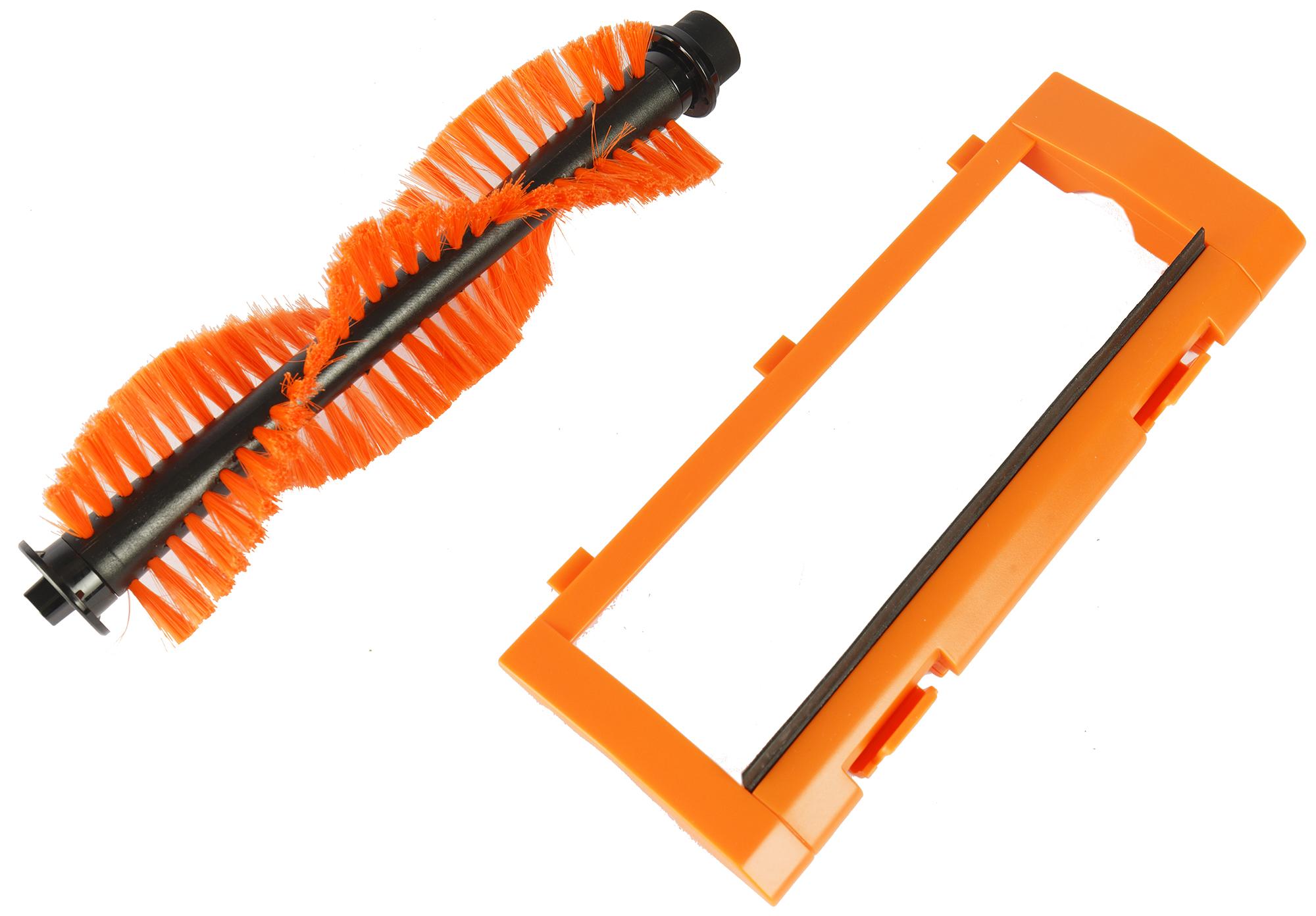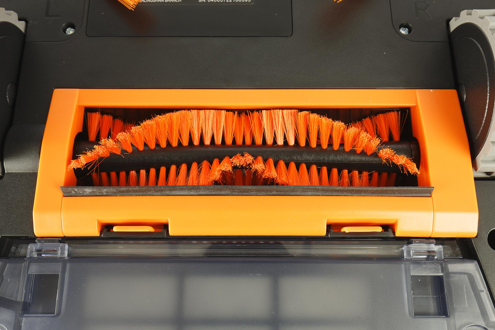 Центральная щетка состоит из трех V-образных рядов оранжевой щетины. Дополнительных пластиковых ламелей у нее нет.