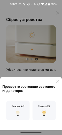 Для подключения к устройству следует выбрать «Режим AP» — об этом написано в руководстве пользователя.