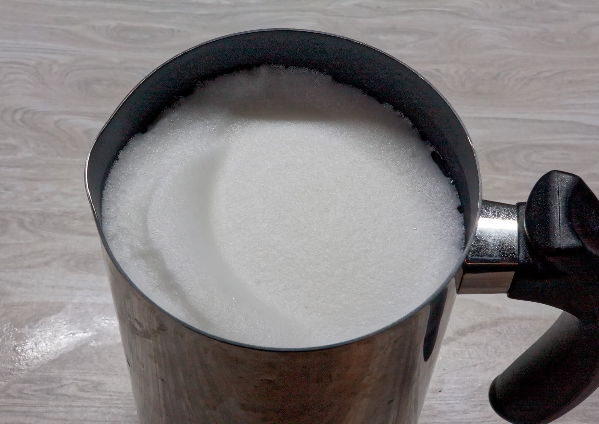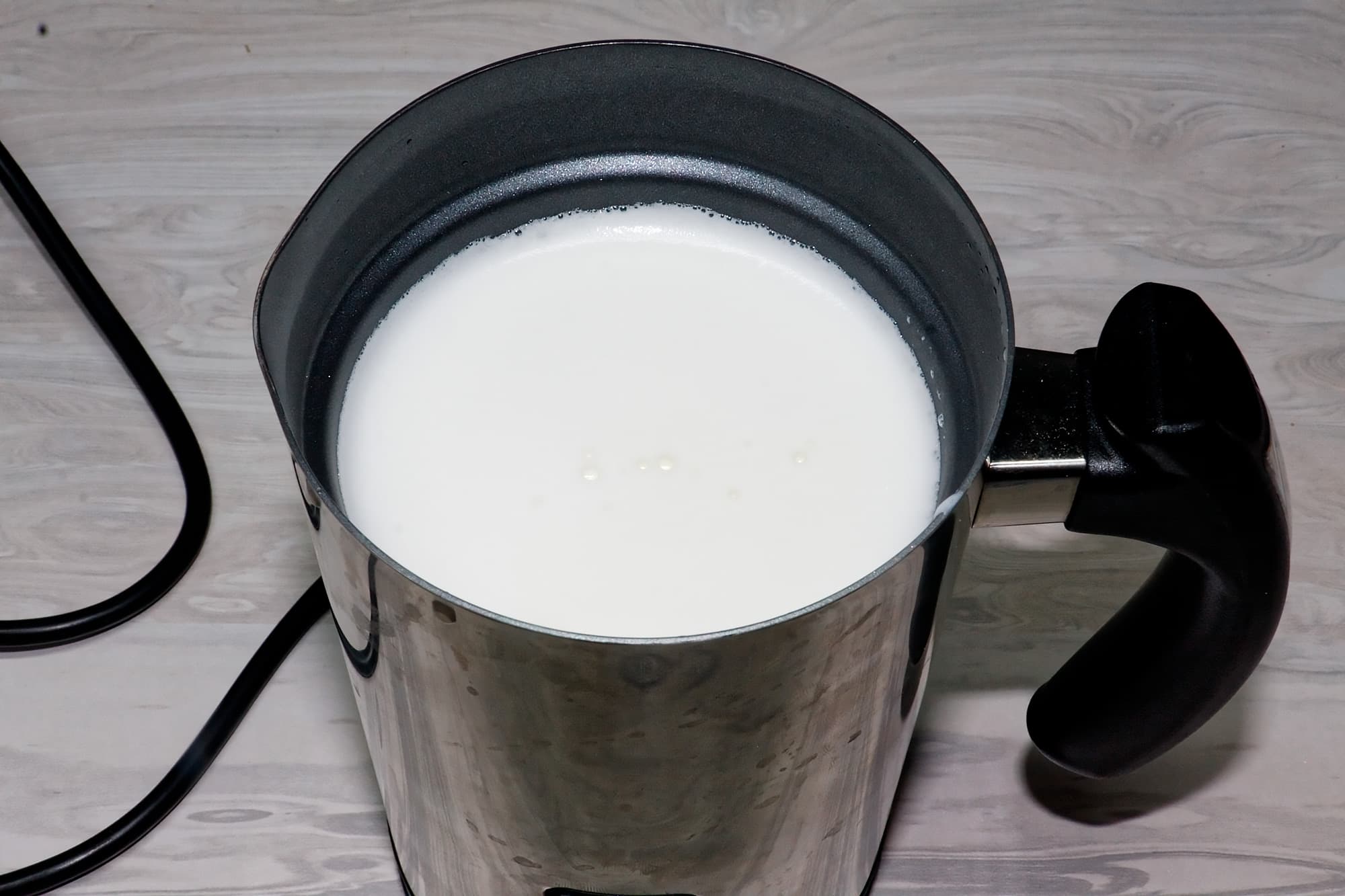 Для этого теста мы взяли 115 мл молока из холодильника, налили его во взбиватель, после чего запустили его в обычном режиме (одно нажатие кнопки).