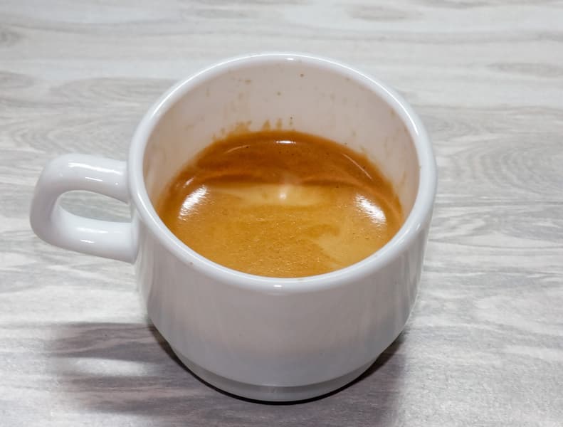 Пока молоко взбивалось, мы приготовили двойной эспрессо.
