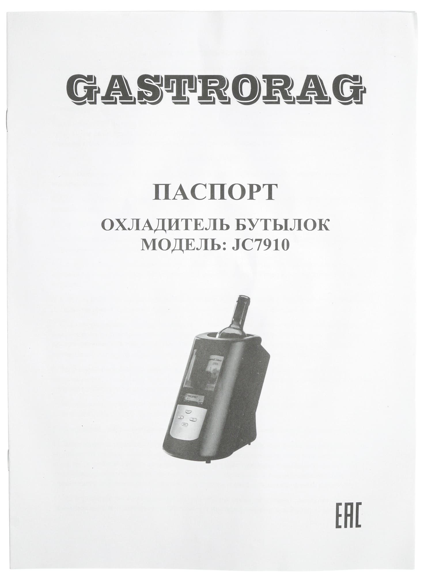 Коробка у этой модели оформлена почти так же, как у предыдущей, только Gastrorag JC7910 на лицевой стороне упаковки охлаждает не игристое, а каберне.