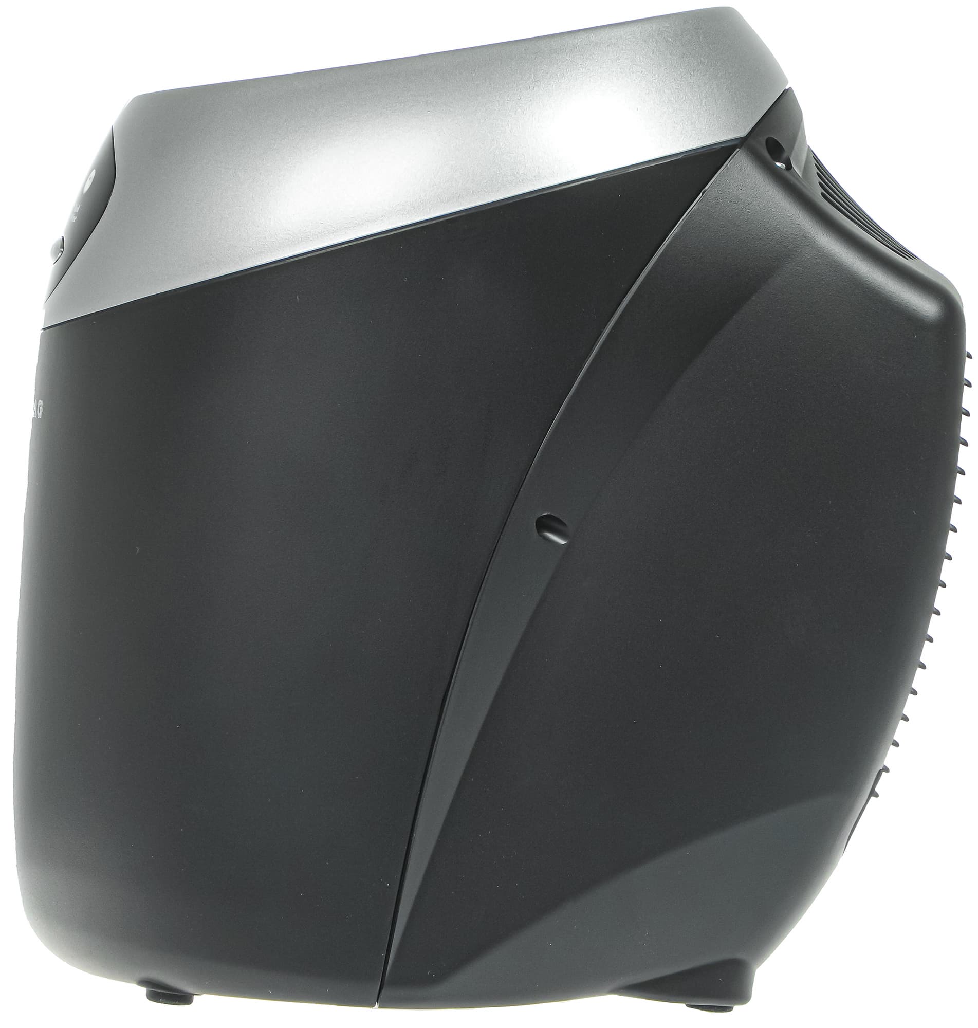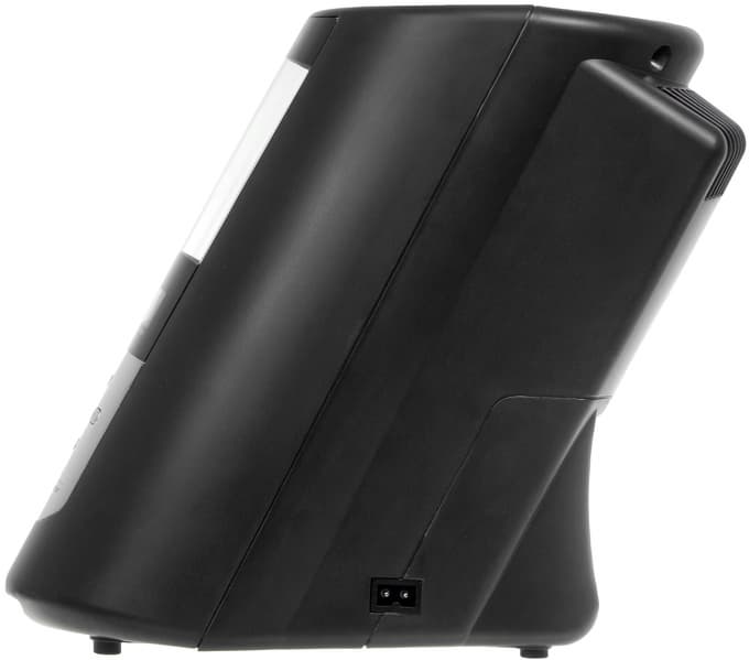 Корпус выполнен из такого же черного пластика, что и у предыдущей модели, с декоративными серебристыми элементами. Конструкция охладителя рассчитана на слегка наклонное размещение бутылки.