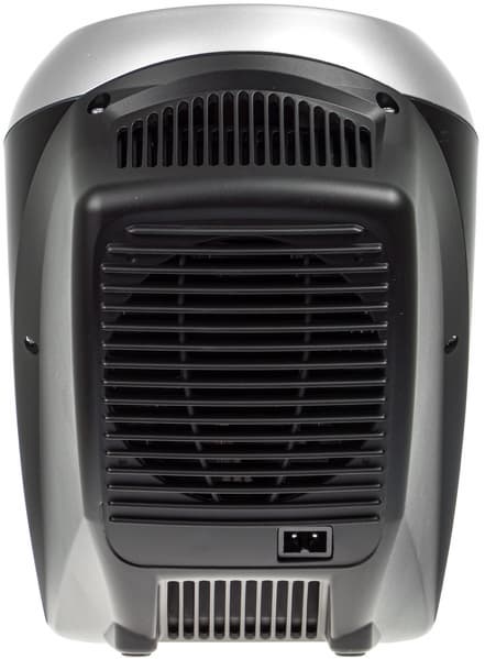 На задней панели есть вентиляционные решетки: снизу для забора воздуха, сверху — для выпуска.