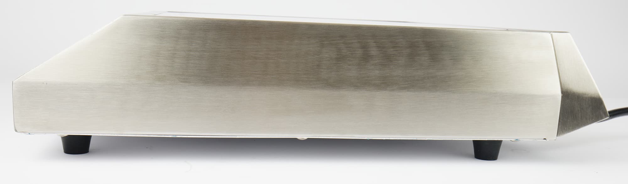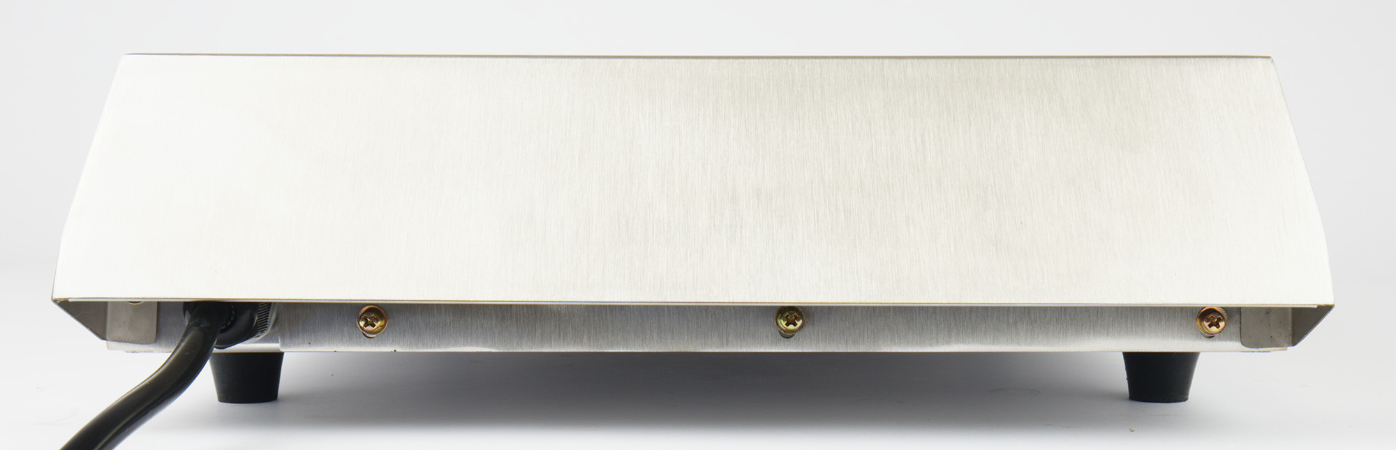 С обоих боков у плитки нержавеющая поверхность, расширенная к низу для максимального рассеивания тепла.