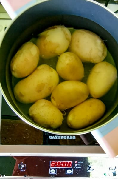 На плитку в средней кастрюле мы поставили вариться молодой картофель.