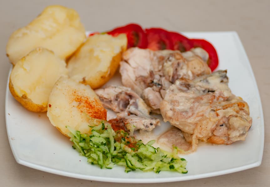 Жареная курица с вареной картошкой