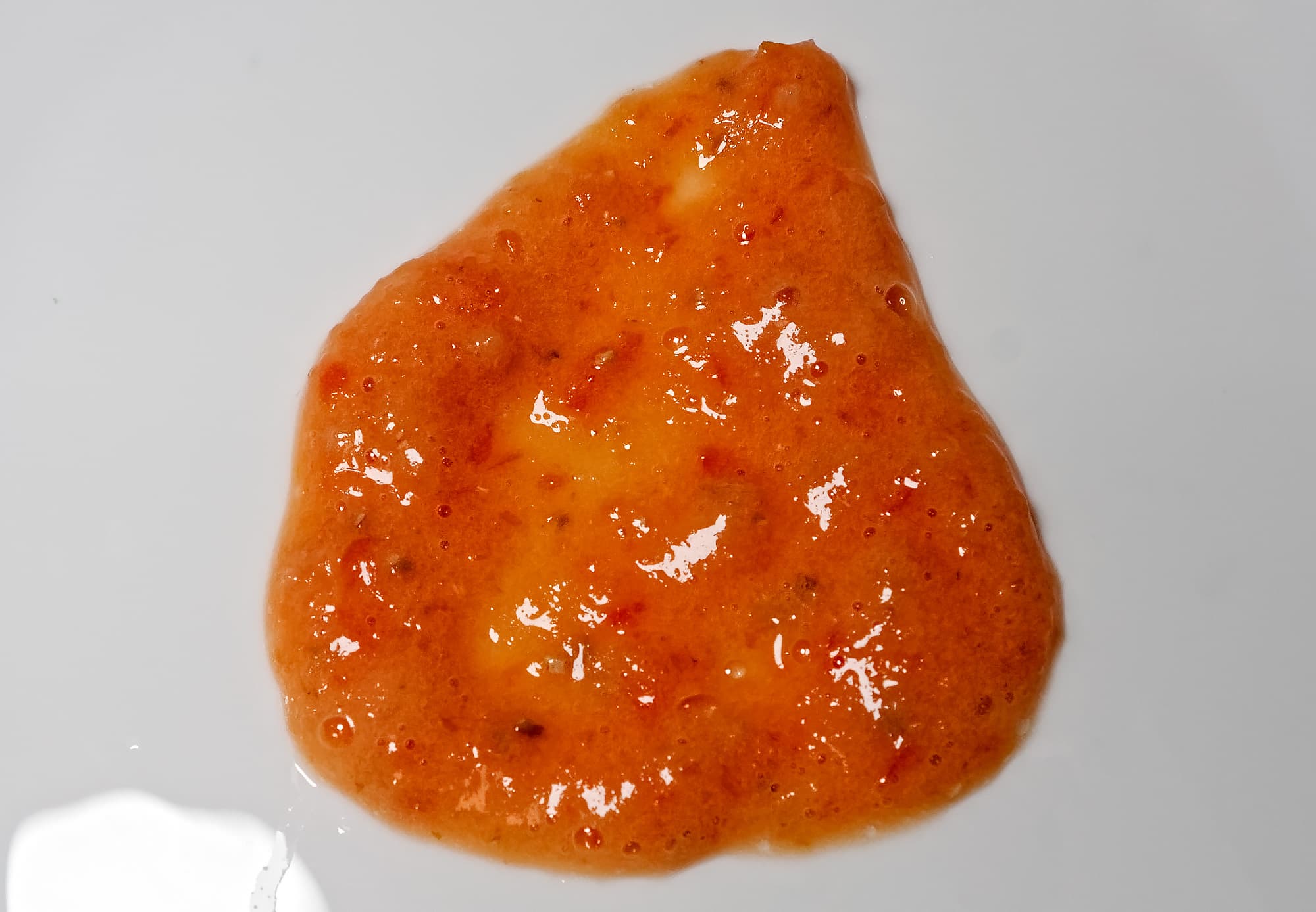 Блендирование шло в ручном режиме, с плавным увеличением скорости. Визуально томаты были измельчены в первые 30 секунд, общая длительность измельчения составила 1 минуту. В итоге мы получили относительно однородную томатную смесь с заметным вкраплением неперемолотых частиц кожуры и семечек.
