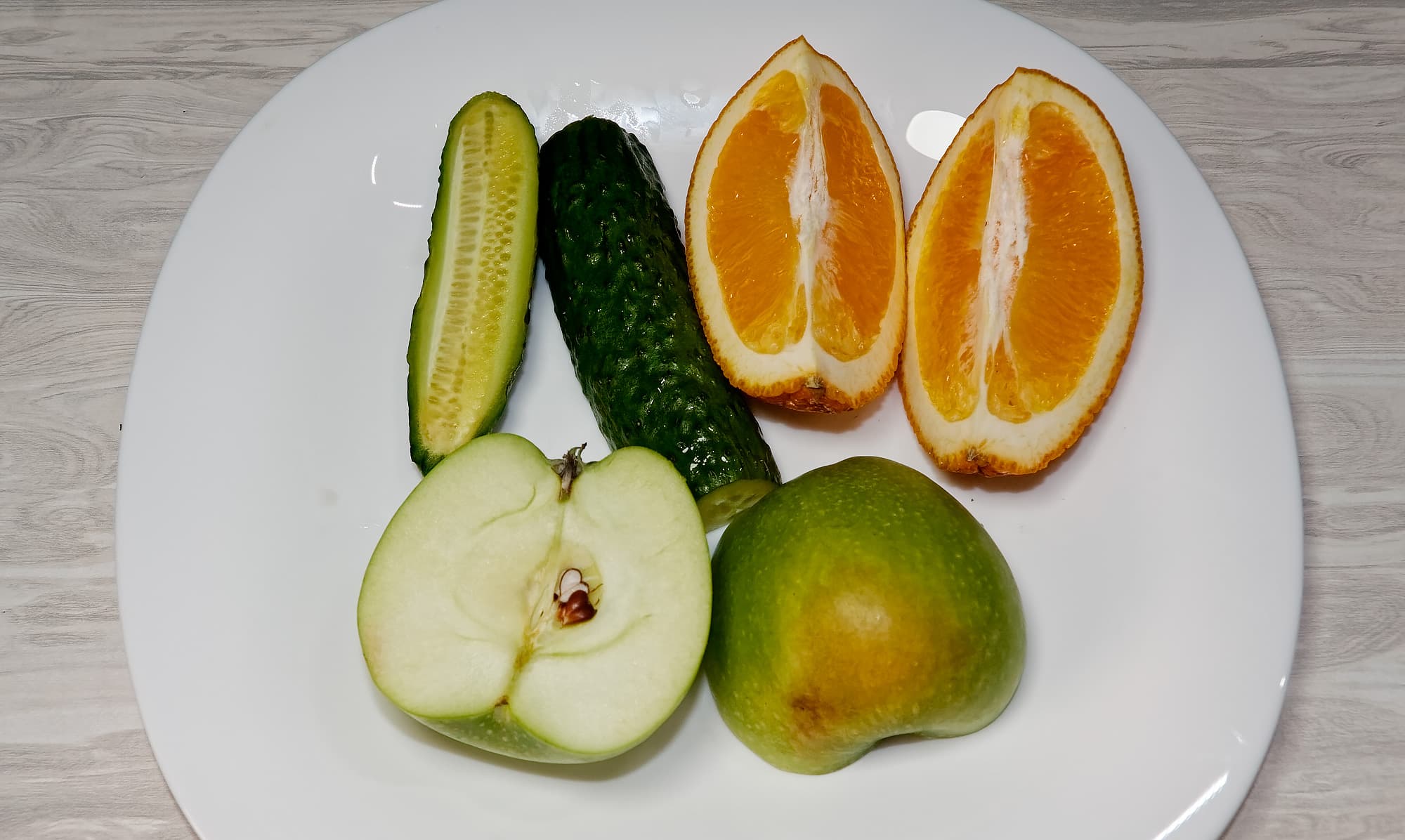 Мы решили усложнить задачу и взяли для нашего следующего эксперимента огурцы, яблоки и мякоть апельсина (в качестве основного источника жидкости).