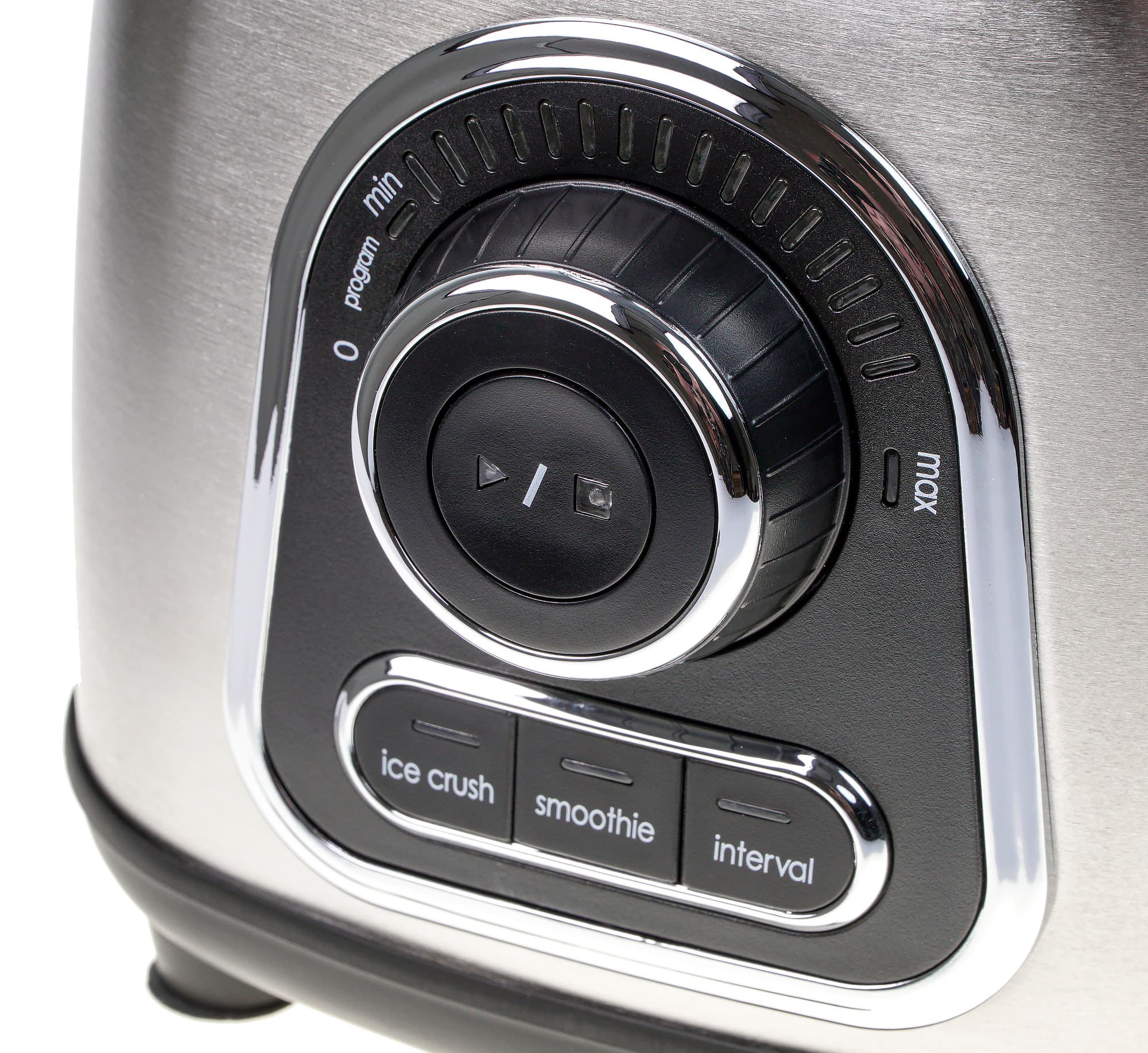 Таким образом, стандартный сценарий использования блендера следующий: если нас интересует запуск программы, то переводим ручку в положение program, после чего нажимаем одну из кнопок выбора программы. Если хотим управлять прибором самостоятельно — выставляем нужную скорость и запускаем мотор кнопкой, расположенной на вращающейся ручке (ей же — отключаем блендер по завершении приготовления, либо просто поворачиваем ручку влево до упора).