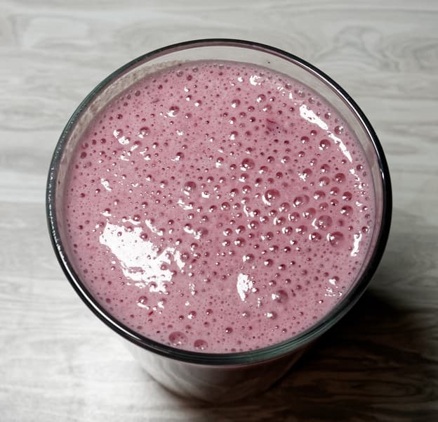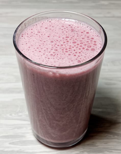 Смузи (банан, молоко, замороженные ягоды)