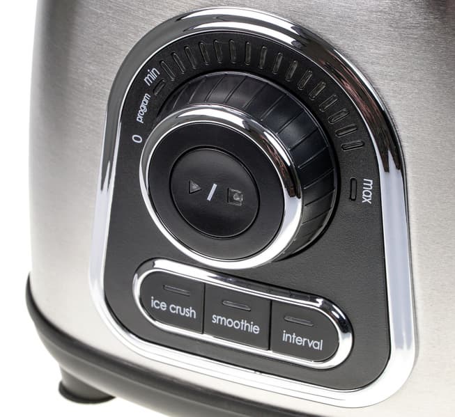 Управление блендером осуществляется с помощью панели управления, состоящей из вращающейся ручки, трех механических кнопок и набора светодиодных индикаторов.