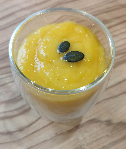 Однако сначала нас постигло разочарование: нож не подхватывал кусочки, и процесс измельчения не двигался. Пришлось добавить два колпачка воды, после чего дело пошло на лад. Полученный смузи был густым, несмотря на воду, и по консистенции напоминал детское пюре: те же нежность и однородность. Даже плотность похожая, хоть сейчас фасуй в пакетики дой-пак. Но мы просто его съели и порадовались наличию спелого манго в магазине и блендера на тестировании.