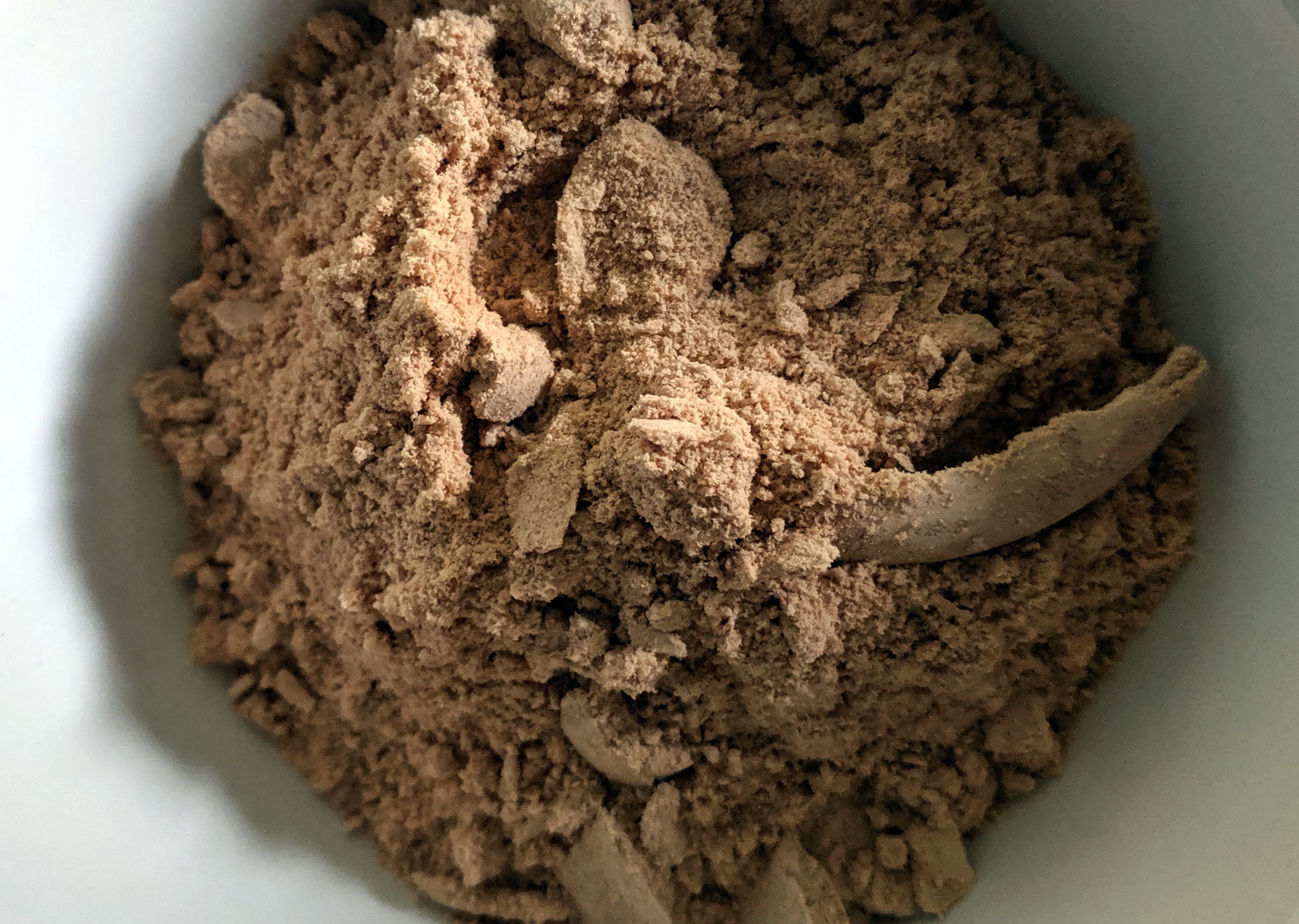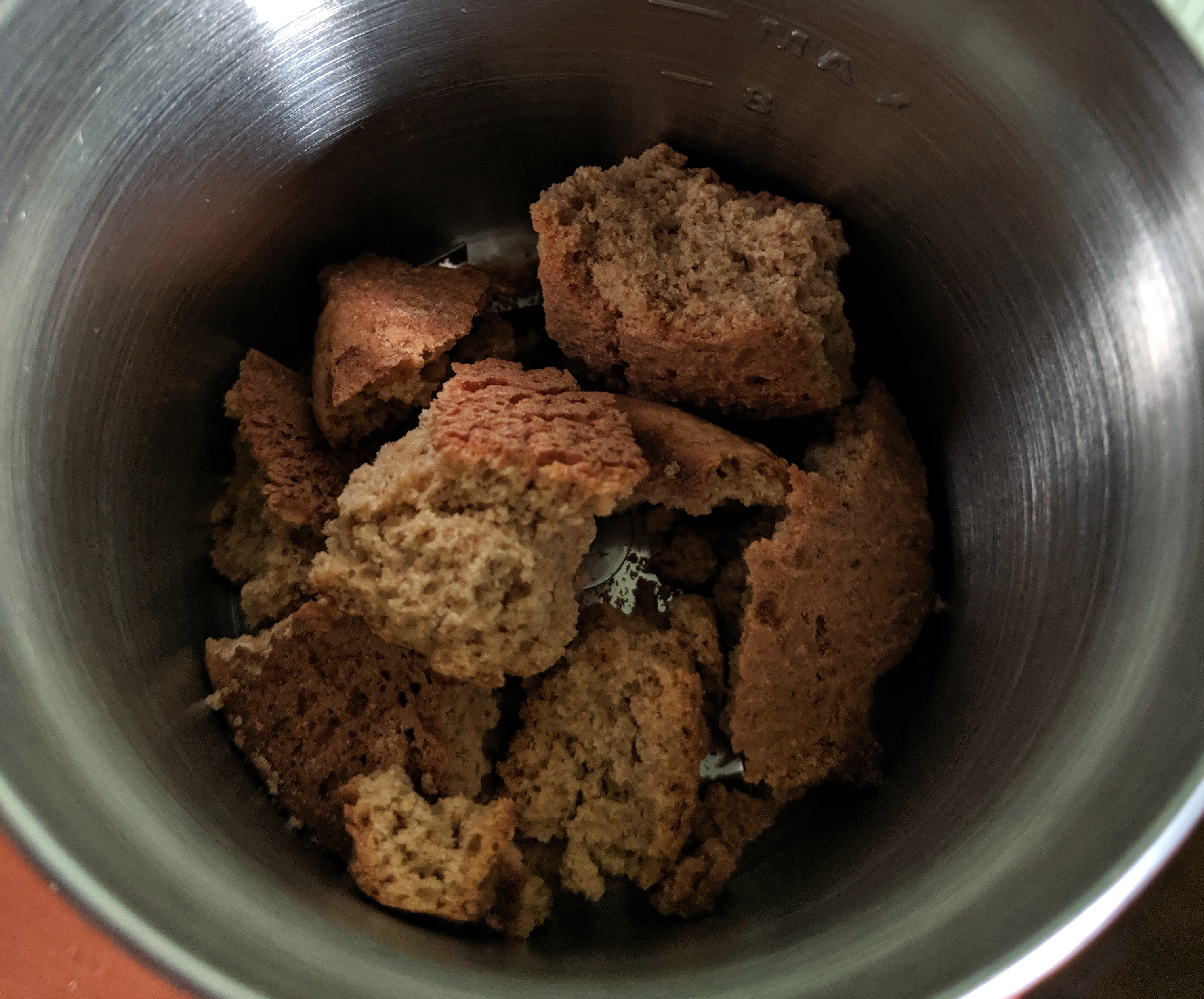 В чашу помещается одно, максимум два печенья. Если добавлять еще, то процесс помола становится неэффективным: уже смолотый продукт плотно оседает на стенках и дне чаши под и вокруг ножа и препятствует нормальному помолу оставшихся кусочков. Приходится их вынимать, затем с помощью ложки доставать слежавшуюся от центробежной силы муку и молоть остатки заново. Но при этом, если не превышать заложенных производителем ограничений по весу продукта, измельчитель мелет чисто, без напряжения. Только греется в процессе.
