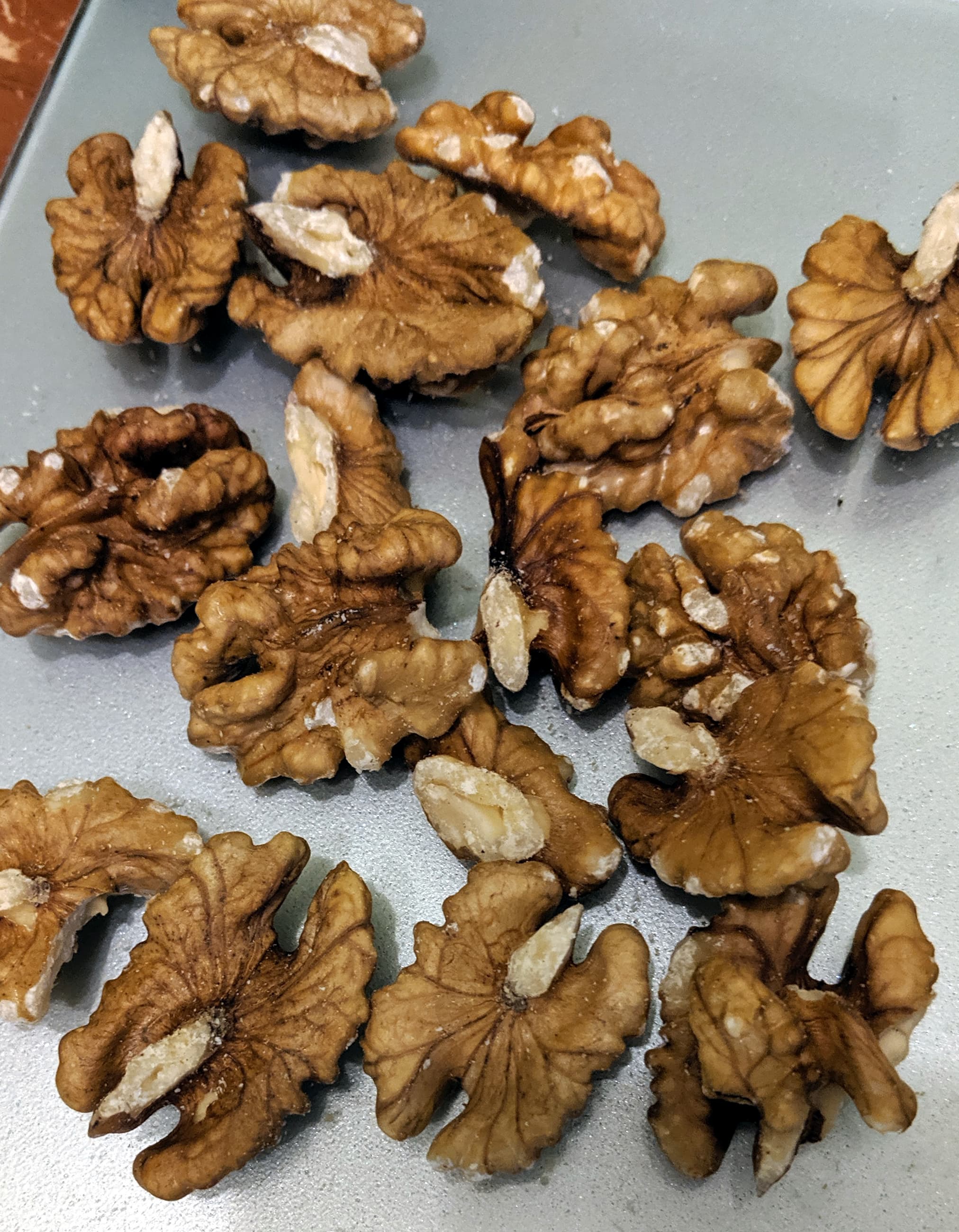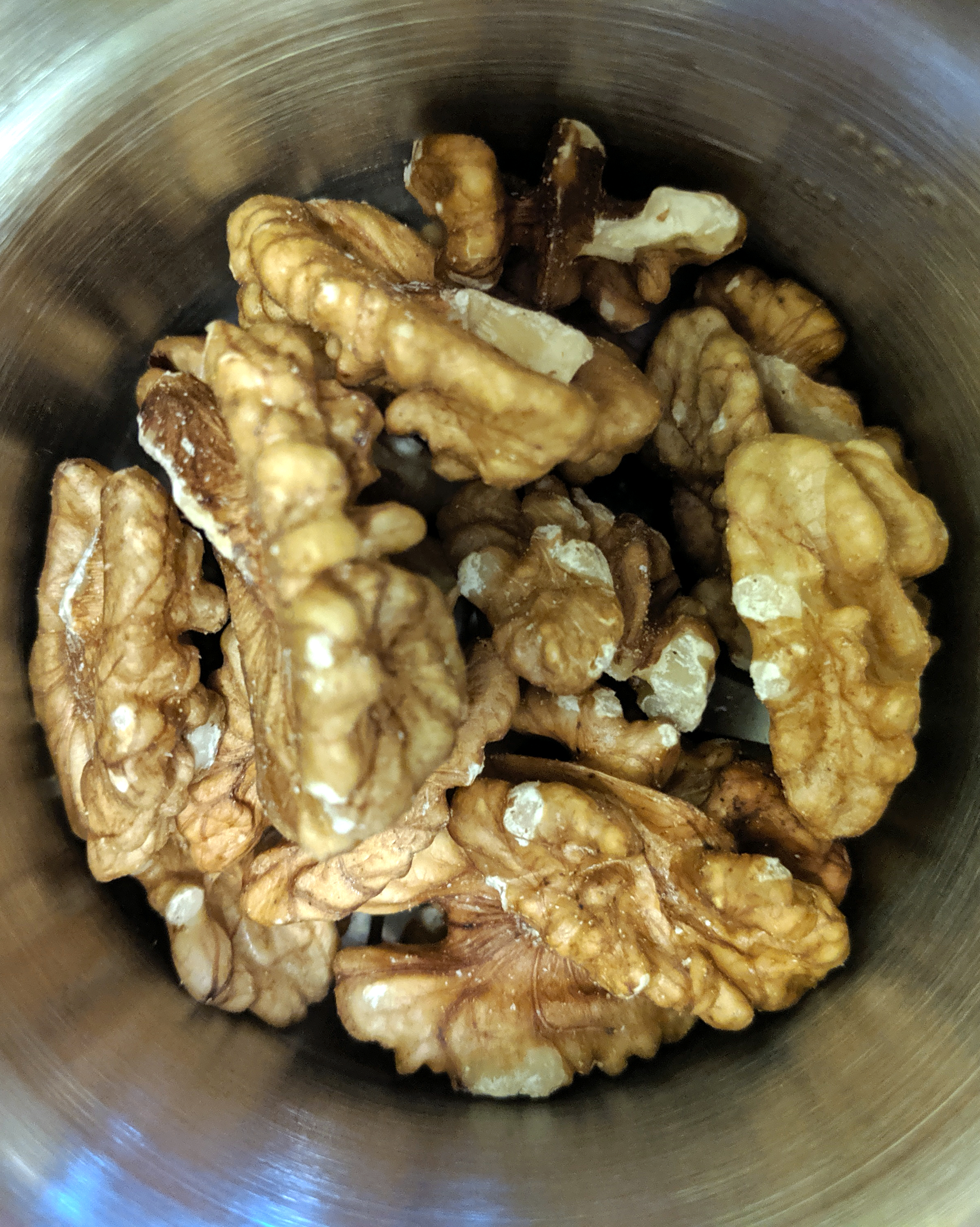 50 граммов грецких орехов за 10 секунд превратились в однородную ореховую крупку, годную и на марципаны (мы знаем, что лучше из миндаля), и на посыпку торта, и на салат.