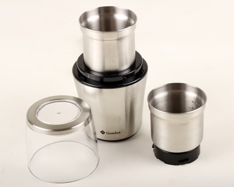 Начнем с того, что на сайте Gemlux вы зря будет искать универсальный измельчитель GL-CG999A в разделе измельчителей. Он находится в разделе кофемолок, каковой, в сущности, и является. Берешь в руки — и сразу понимаешь: кофемолка. В лучшую сторону от всех известных нам мельничек он отличается двумя чашами с разными видами ножей.