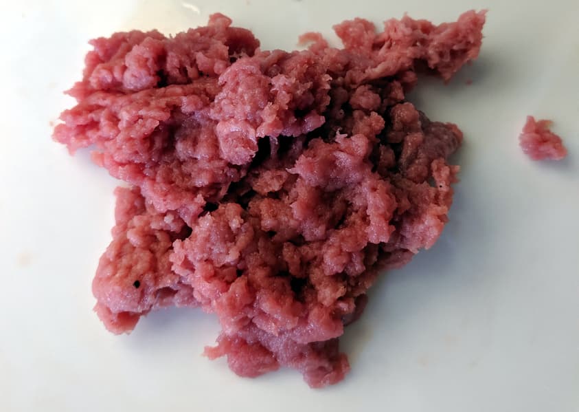 Небольшое количество сырого мяса (у нас была говядина) без костей и жил можно перемолоть в чаше с крестовым ножом. Надо только нарезать мякоть помельче и не молоть дольше 15 секунд за один раз во избежание перегрева.