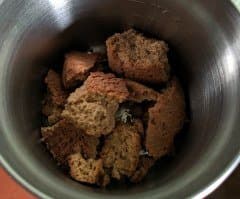 Мы протерли все части измельчителя влажной тканью, включая чаши и крышку и поставили чашу с прямым ножом в корпус, заблокировав поворотом по часовой стрелке. Положили в нее довольно крепкое овсяное печенье, наломанное на средние куски (по четвертинке стандартного печенья или чуть меньше), закрыли крышкой и придавили ладонью.