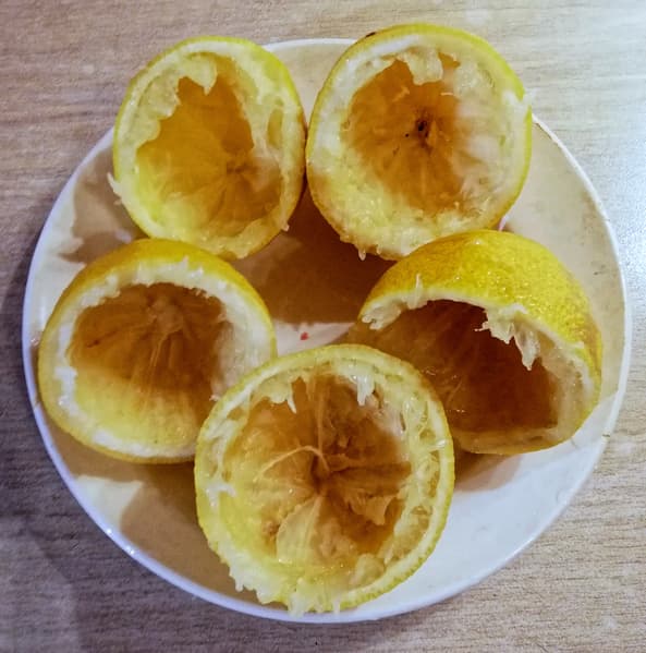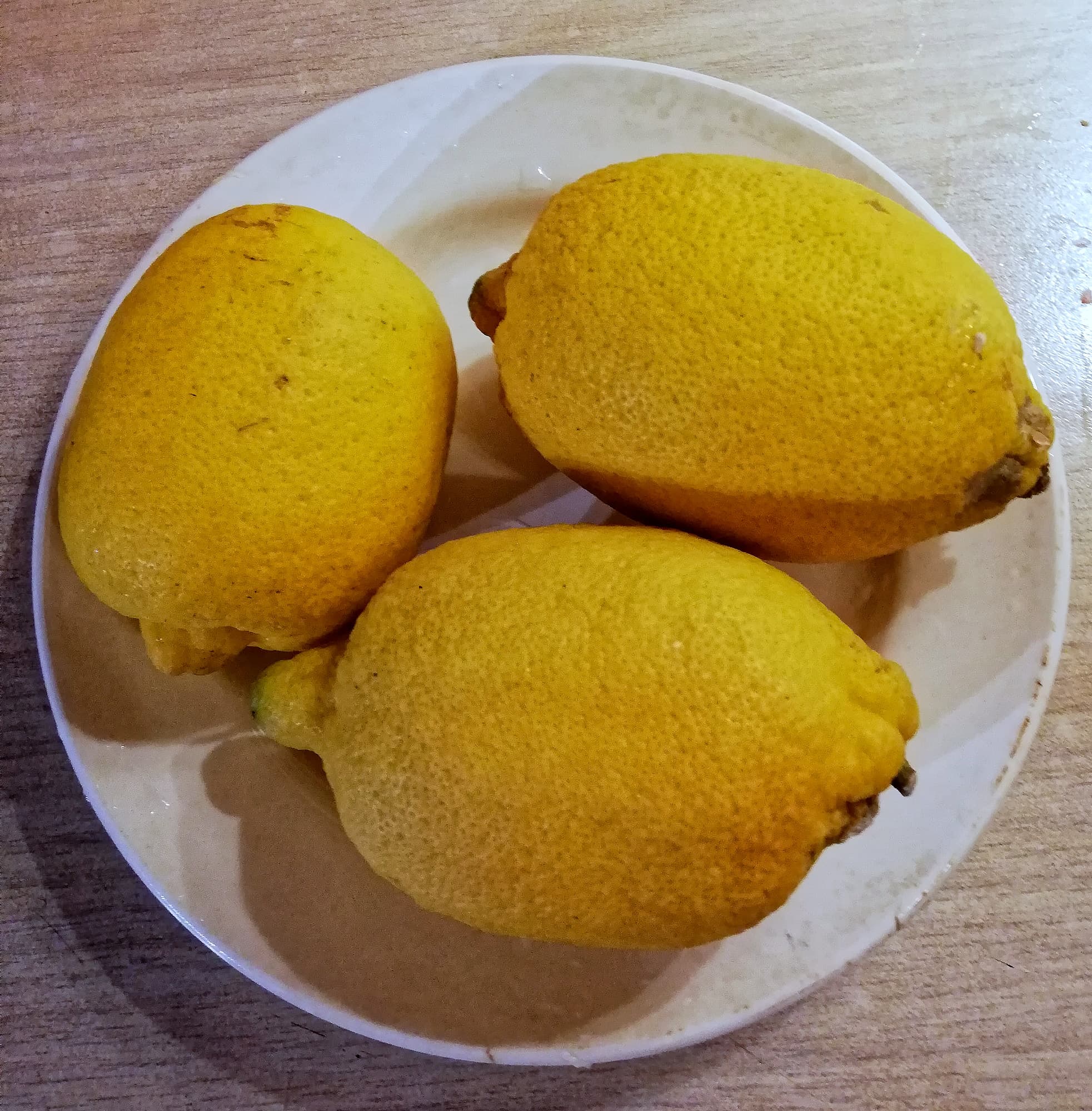 Мы взяли три лимона общей массой в 614 граммов и превратили их в сок.