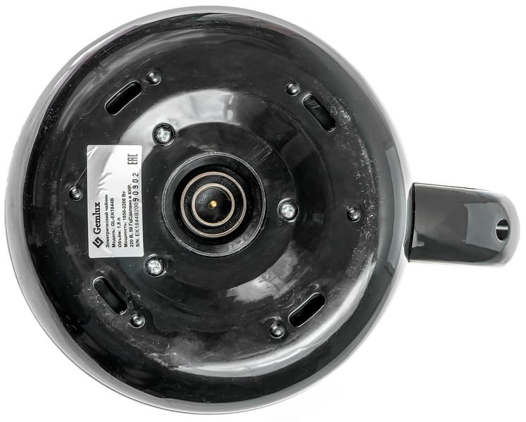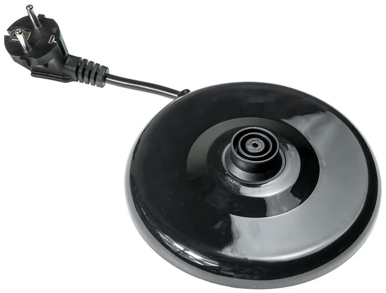 База чайника сделана из черного глянцевого пластика.